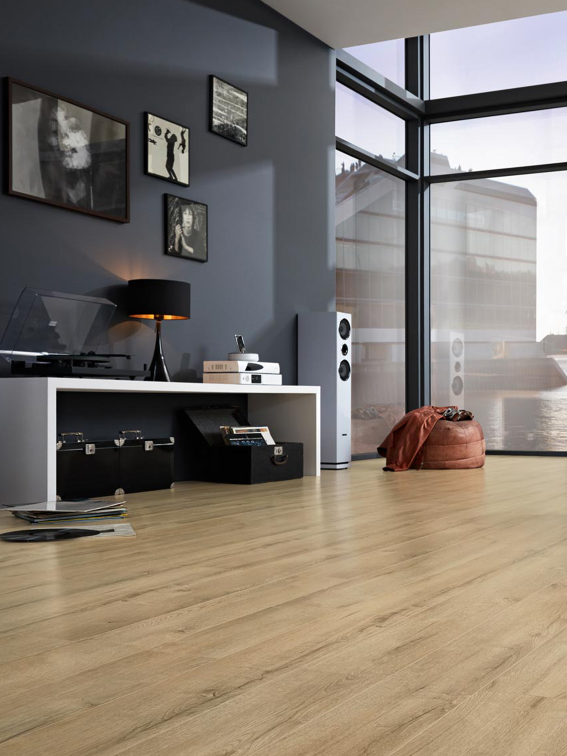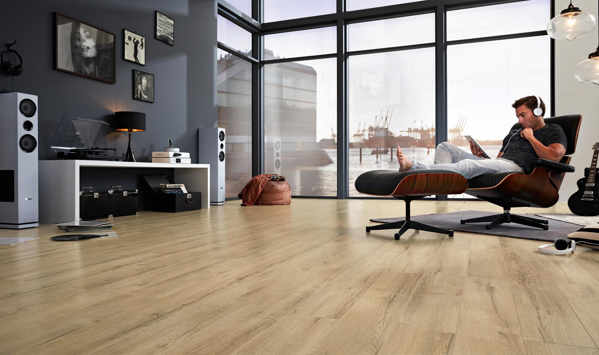 Podłoga inspirowana drewnem i wodą. Nowy wąski format w klasie AC4 daje możliwość wypłynięcia na szerokie wody wnętrzarskich aranżacji.