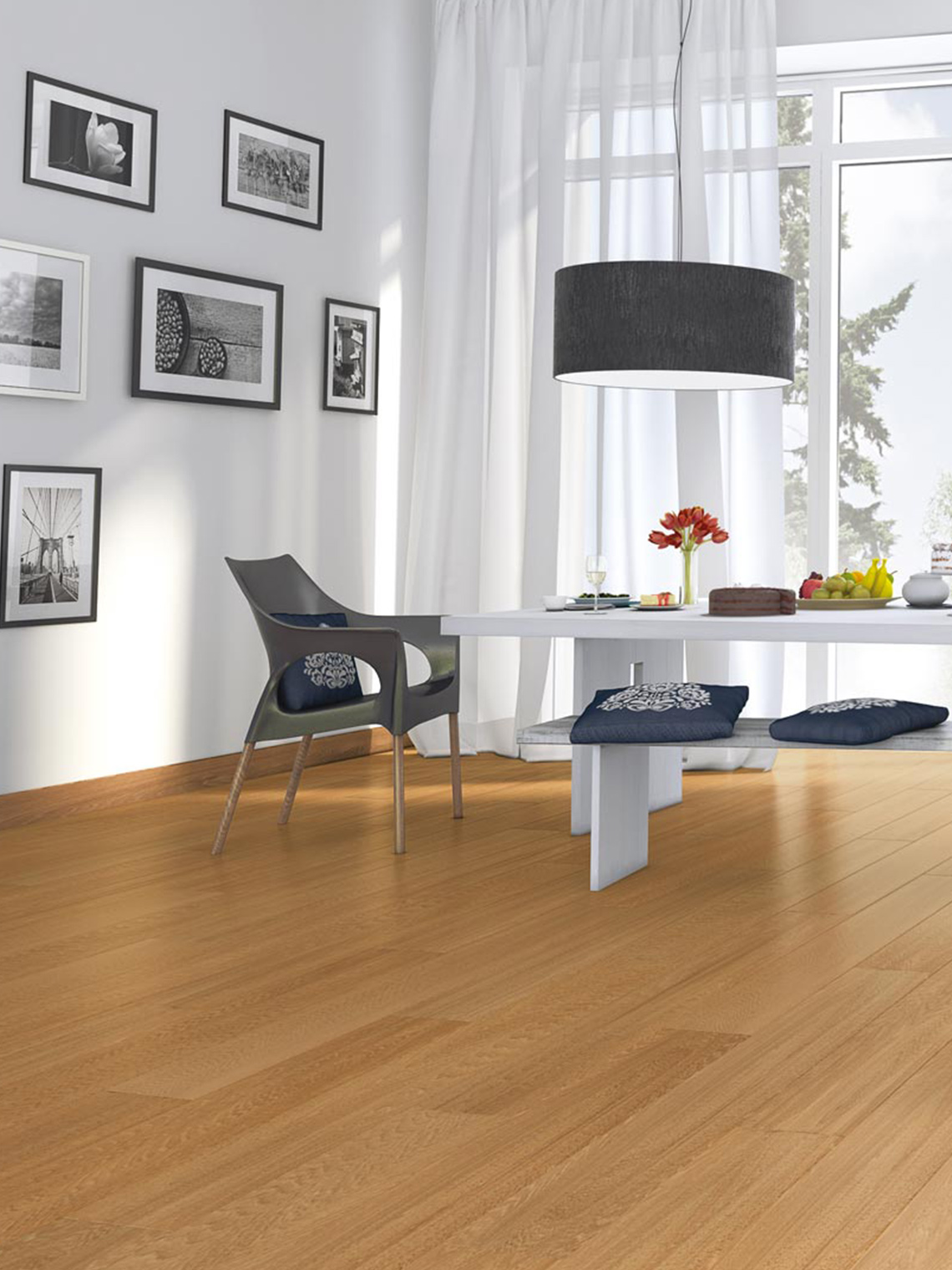 Dzięki technologii Aqua Block, panele są odporne na wilgoć, co sprawia, że są idealnym wyborem do pomieszczeń, w których występuje wyższa wilgotność, takich jak kuchnie, łazienki czy przedpokoje. Klasa ścieralności AC4 zapewnia wysoką odporność na zarysowania i zużycie, co czyni je doskonałym rozwiązaniem do średnio intensywnie użytkowanych pomieszczeń, takich jak sypialnie, salon czy biuro.