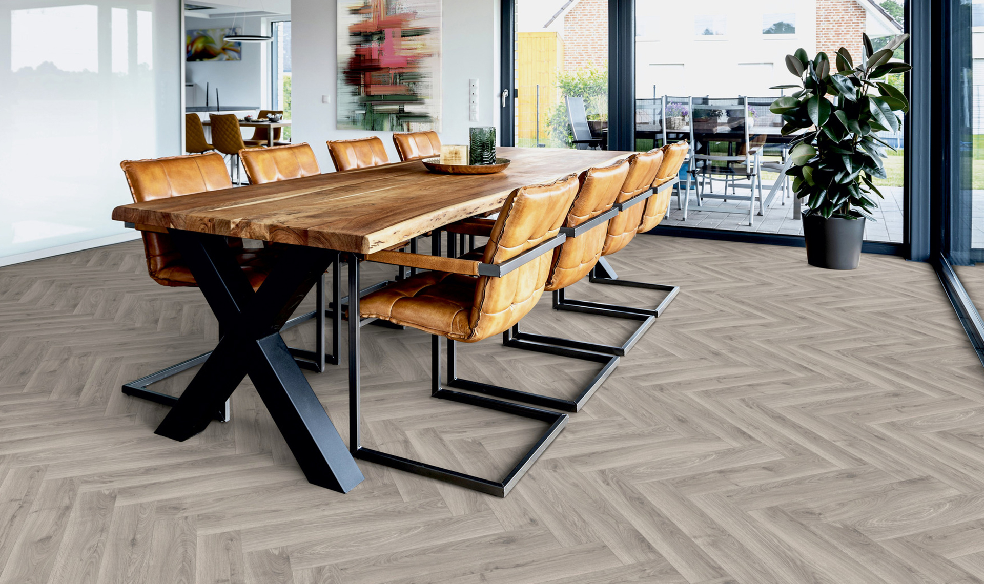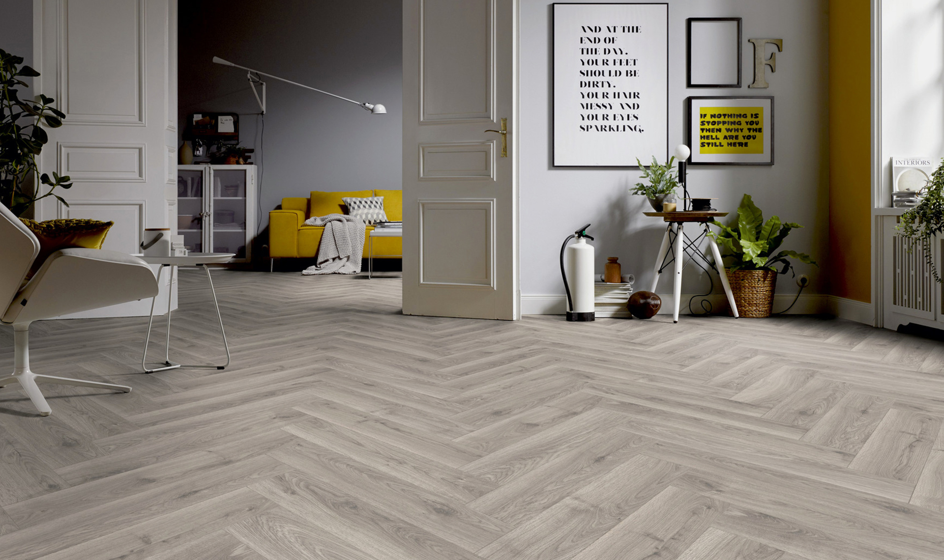 Panele podłogowe Ter Hürne Herringbone Edition Dąb Atelier to stylowe rozwiązanie w klasycznym wzorze jodełki, które wprowadza do wnętrza subtelny, loftowy charakter dzięki chłodnej, dębowej kolorystyce. Ich format 630 × 126 × 10 mm oraz czterostronna V‑fuga podkreślają elegancki układ i naturalną strukturę drewna. Klasa ścieralności AC5 oraz użytkowania 23/32 zapewniają wysoką trwałość i odporność na intensywne użytkowanie, a połączenie SmartConnect HB ułatwia szybki i pewny montaż. Panele nadają się do zastosowania z ogrzewaniem podłogowym, co czyni je praktycznym wyborem dla nowoczesnych i wymagających aranżacji.