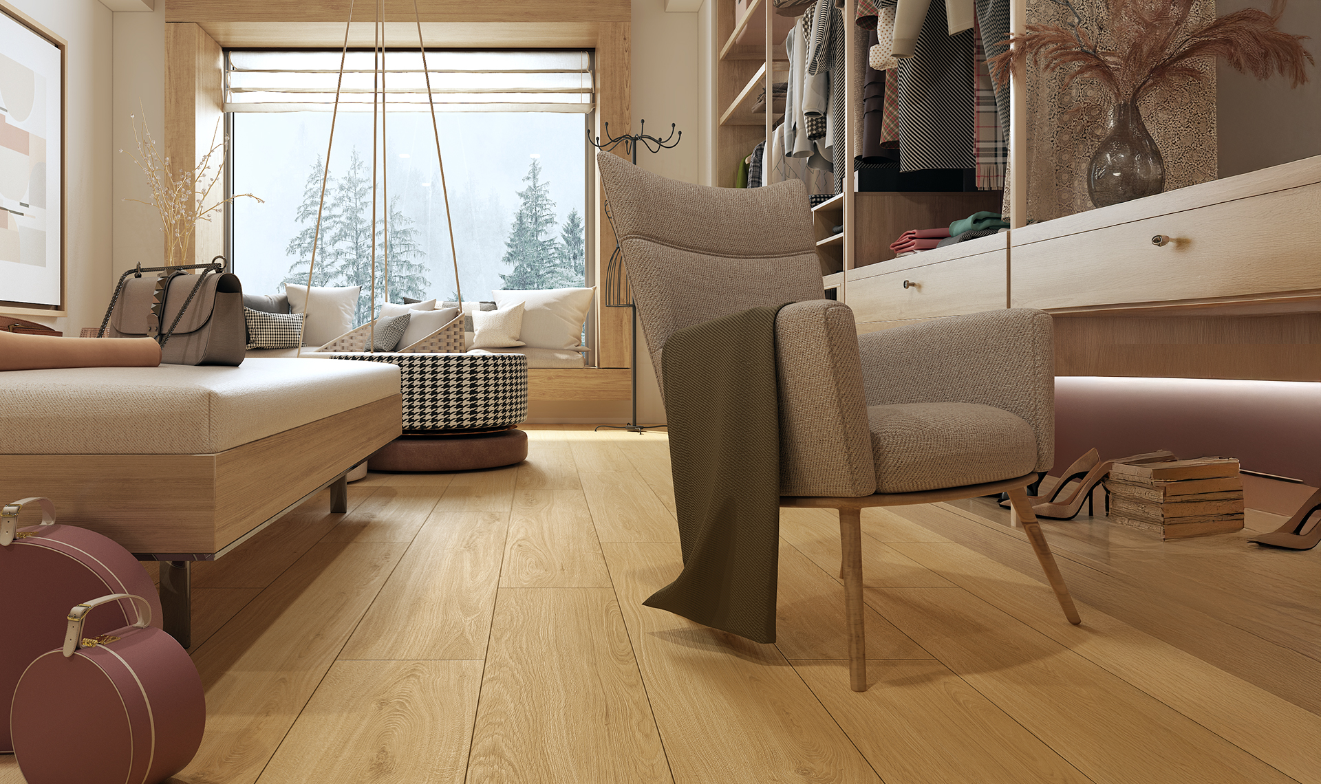 Wzmocniona górna warstwa podłogi Querra Balance WR zapewnia zwiększoną odporność na mikrozarysowania, dzięki czemu jej struktura postarzonego drewna utrzymuje się przez lata. Panel Dąb Skriven o wysokiej klasie ścieralności AC5, dzięki bardziej szczelnemu zamkowi i dodatkowym zabezpieczeniom umożliwia montaż paneli w pomieszczeniach o zwiększonej wilgotności (z wyłączeniem sauny i strefy prysznica).