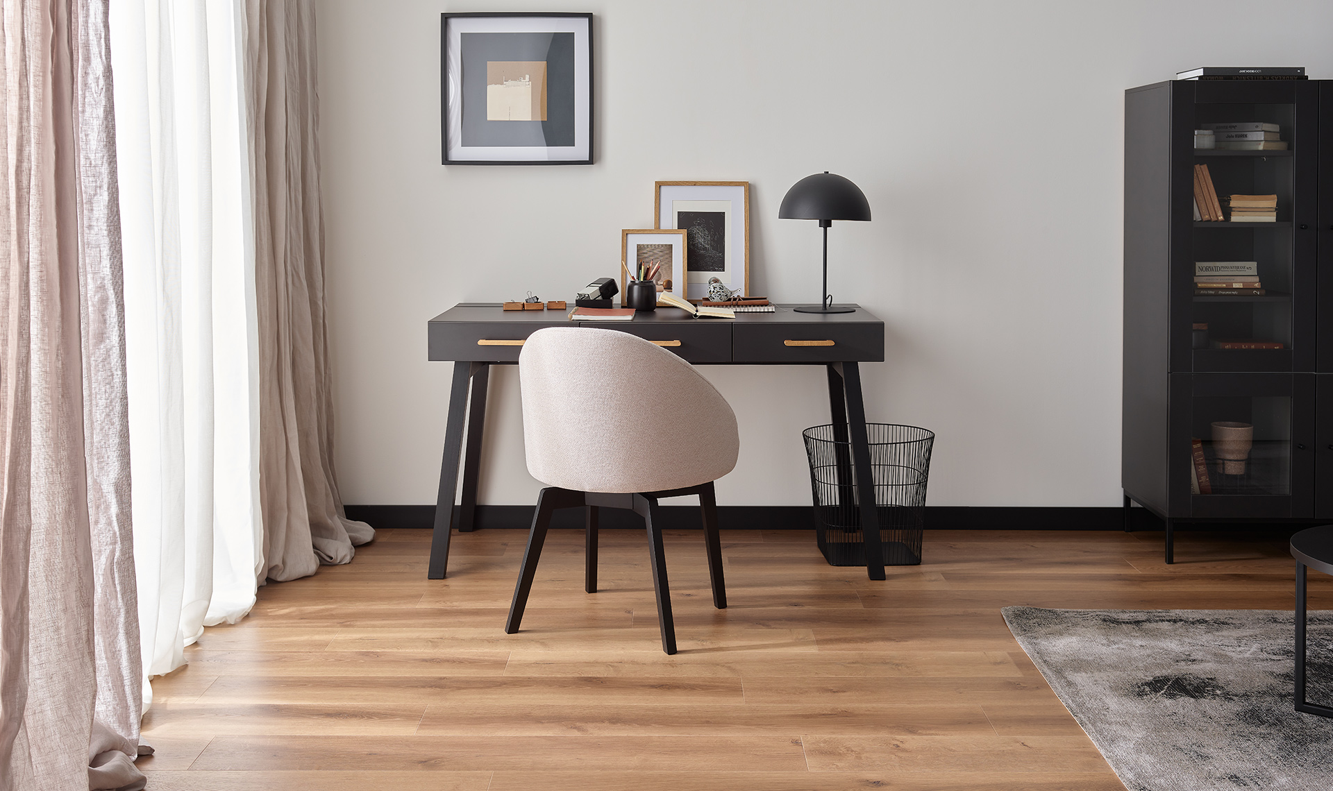 Panel Dąb Vitsuni charakteryzuje się wysoką klasą ścieralności AC4 oraz pokryty jest unikatową wodoodporną powłoką HydroSeal. Dzięki doskonale spasowanemu zamkowi i dodatkowym zabezpieczeniom w postaci warstwy hydrofobowej możliwy jest montaż paneli w pomieszczeniach o zwiększonej wilgotności. Dąb Vitsuni posiada strukturę synchroniczną, dzięki czemu precyzyjnie oddaje charakter drewna. Sęki i słoje są rozłożone nieregularnie i różnią się wybarwieniem, dlatego wzór prezentuje się bardzo naturalnie.