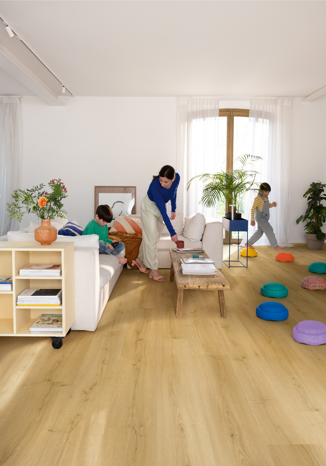 Panele winylowe Quick-Step Bloom Dąb Szczotkowany Miodowy (AVMPU40318) to doskonały wybór dla osób ceniących ciepło i naturalny urok drewna. Ich miodowy odcień nadaje wnętrzom przytulności oraz wyjątkowego charakteru. Podłoga o długości 1494 mm, szerokości 209 mm oraz grubości 6 mm łączy estetykę z funkcjonalnością, idealnie nadając się do różnych aranżacji. Zintegrowany podkład nie tylko zwiększa komfort użytkowania, ale także ułatwia montaż. Dąb Szczotkowany Miodowy to elegancki i trwały wybór, który wzbogaci każde wnętrze.