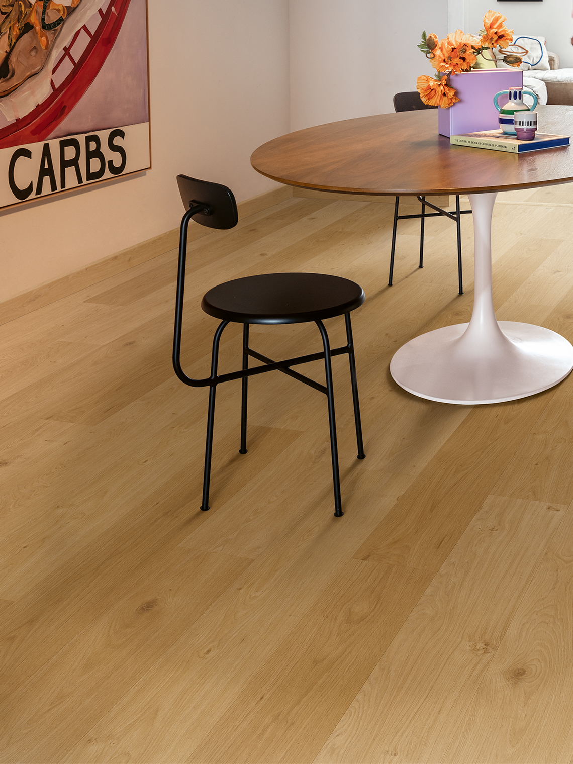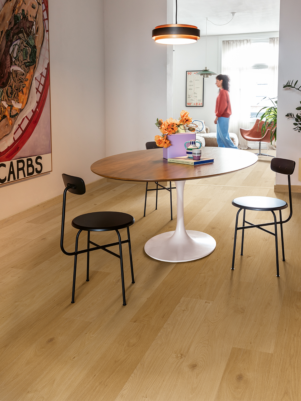Kolekcja Blos Base od Quick-Step to nowoczesne podłogi winylowe, które łączą styl z funkcjonalnością. Oferowane w różnych wzorach, doskonale imitują drewno, dodając charakteru wnętrzom. Podłogi są w 100% wodoodporne. Dzięki wysokiej trwałości są odporne na zarysowania, a szybki montaż dzięki systemowi bezklejowemu sprawia, że ich układanie jest łatwe i bezproblemowe. Wybierz Blos Base, aby cieszyć się elegancją i praktycznością w swoim domu.