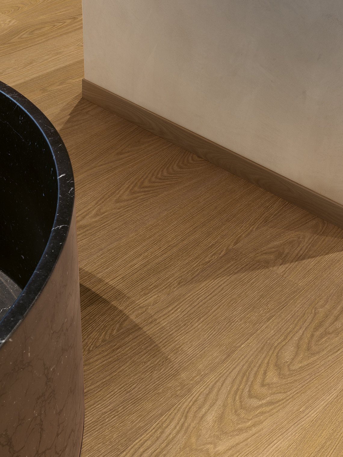 Wybierz Dąb Kakaowy Quick-Step Blos Base, aby stworzyć przestrzeń, w której ciepło i elegancja spotykają się w harmonijnej całości.