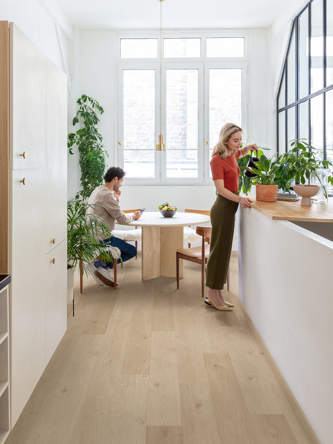 Panele winylowe Quick-Step Blos Dąb Coast Piaskowy (AVSPU40322) to elegancki wybór dla tych, którzy pragną wprowadzić do wnętrza ciepło i naturalny styl. Charakteryzują się jasnym, piaskowym odcieniem dębu, który nadaje przestrzeni przytulny klimat. Wymiary paneli to 1251 mm długości, 189 mm szerokości i 5 mm grubości, a zintegrowany podkład zapewnia dodatkowy komfort oraz izolację akustyczną. Idealne do nowoczesnych i klasycznych aranżacji, łączą elegancję z funkcjonalnością.