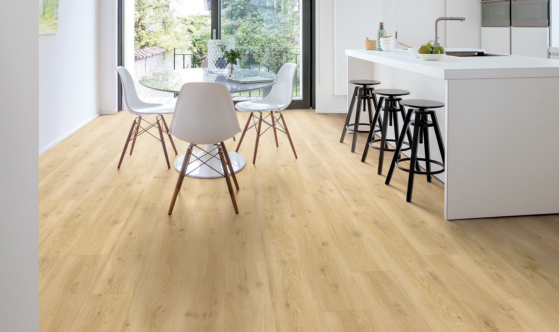 Panele winylowe Quick-Step Blos Dąb Dryfujący Beżowy (AVSPU40018) to doskonały wybór dla miłośników naturalnych i stonowanych wykończeń. Charakteryzują się ciepłym, beżowym odcieniem dębu, który wprowadza do wnętrza przytulną atmosferę. Panele mają wymiary 1251 mm długości, 189 mm szerokości i 5 mm grubości, a zintegrowany podkład zapewnia dodatkowy komfort oraz lepszą izolację akustyczną. Idealnie sprawdzą się w nowoczesnych oraz klasycznych aranżacjach, łącząc elegancję z funkcjonalnością.