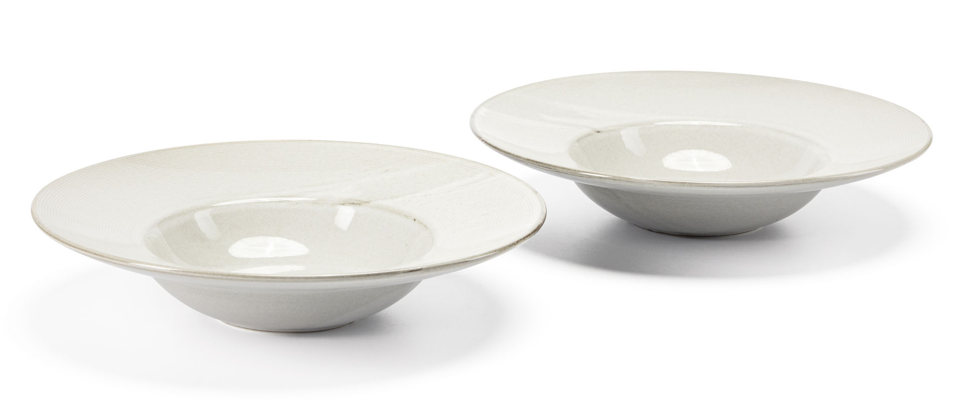 This set of two 28.5 cm diameter pasta plates from the Wikle collection combines minimalist design with the highest quality workmanship. Created from premium porcelain, the plates impress with a unique reactive glaze and a handmade finish that gives each piece its individual character.