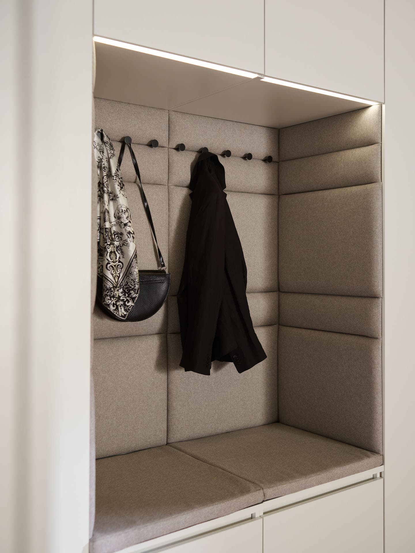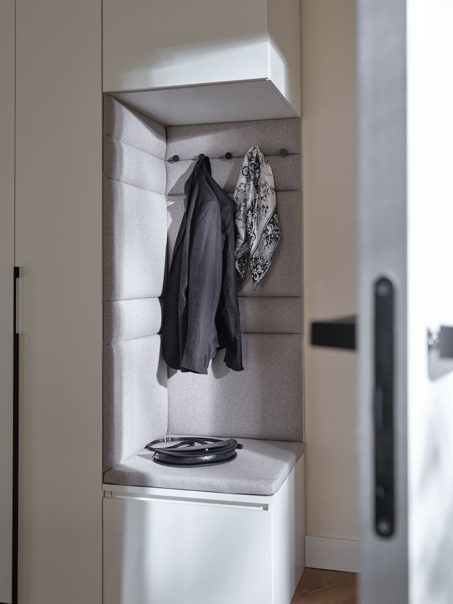 Upholstered panels warm up the look of the interior and make it more practical. It's an ideal material for side support, useful when putting on and taking off shoes.