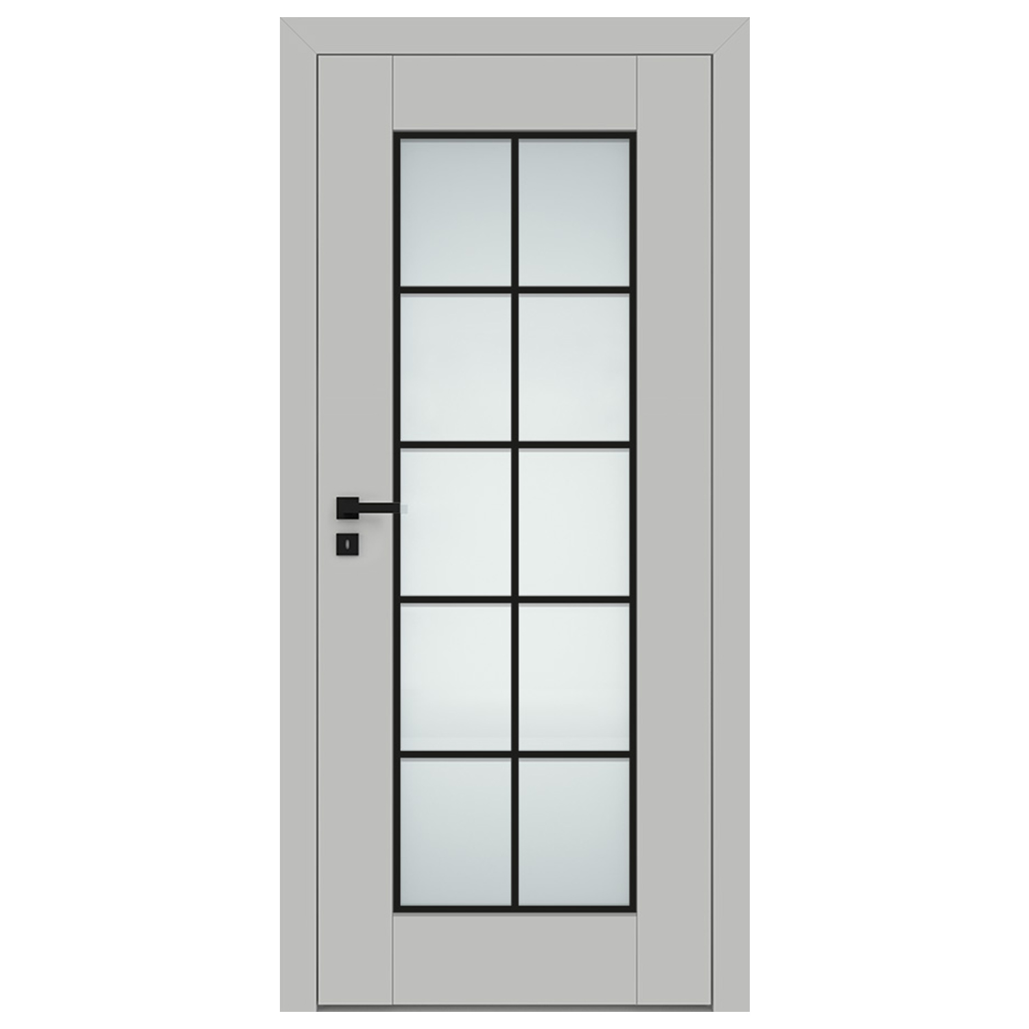 przeźroczysta. Modele 7 do 9 posiadają ramkę i szpros w kolorze czarnym. Skrzydło wyposażone jest w wersji przylgowej w 3 zawiasy wkręcane koloru srebrnego, zamek zasuwkowy na klucz zwykły, blokadę łazienkową, wkładkę patentową lub zamek oszczędnościowy a bezprzylgowej w gniazda pod 2 zawiasy wpuszczane Estetic 80 (zawiasy stanowią wyposażenie ościeżnicy), zamek magnetyczny na klucz zwykły, blokadę łazienkową, wkładkę patentową lub zamek oszczędnościowy. Do skrzydeł przylgowych ESTRA należy stosować ościeżnice z 3 zawiasami.