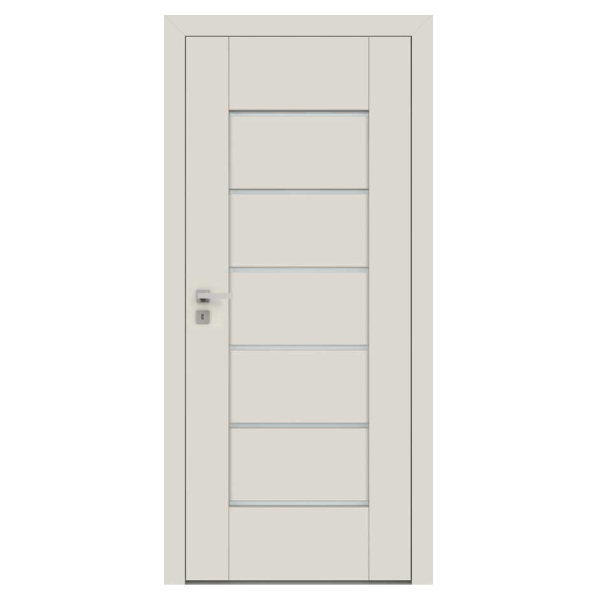 Skrzydło drzwiowe Even jest malowane lakierem wodnym UV. Wykonane jest z ramiaka z płyty MDF oraz szyby Decormat o grubości 4 mm. Wyposażone są w zamek na klucz, wkładkę bądź blokadę łazienkową oraz tzw. zamek oszczędnościowy, 3 zawiasy oraz opcjonalnie szybę Decormat brąz, grafit lub szybę przeźroczystą.