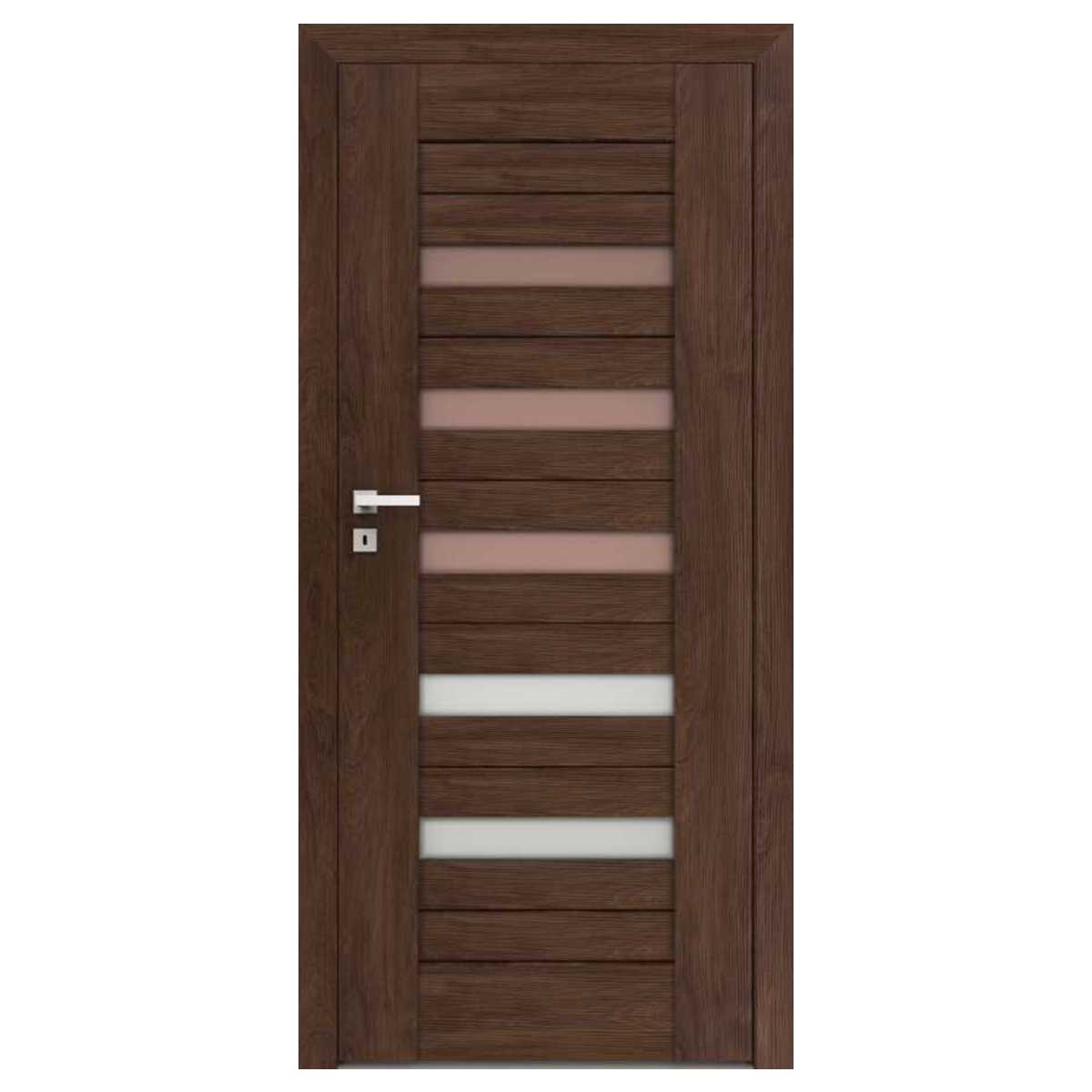 klucz, blokada łazienkowa, wkładka patentowa, lub zamek oszczędnościowy. Opcjonalnie można wybrać szyby przeźroczysta, Decormat brąz bądź Decormat grafit. Skrzydło przygotowane jest do