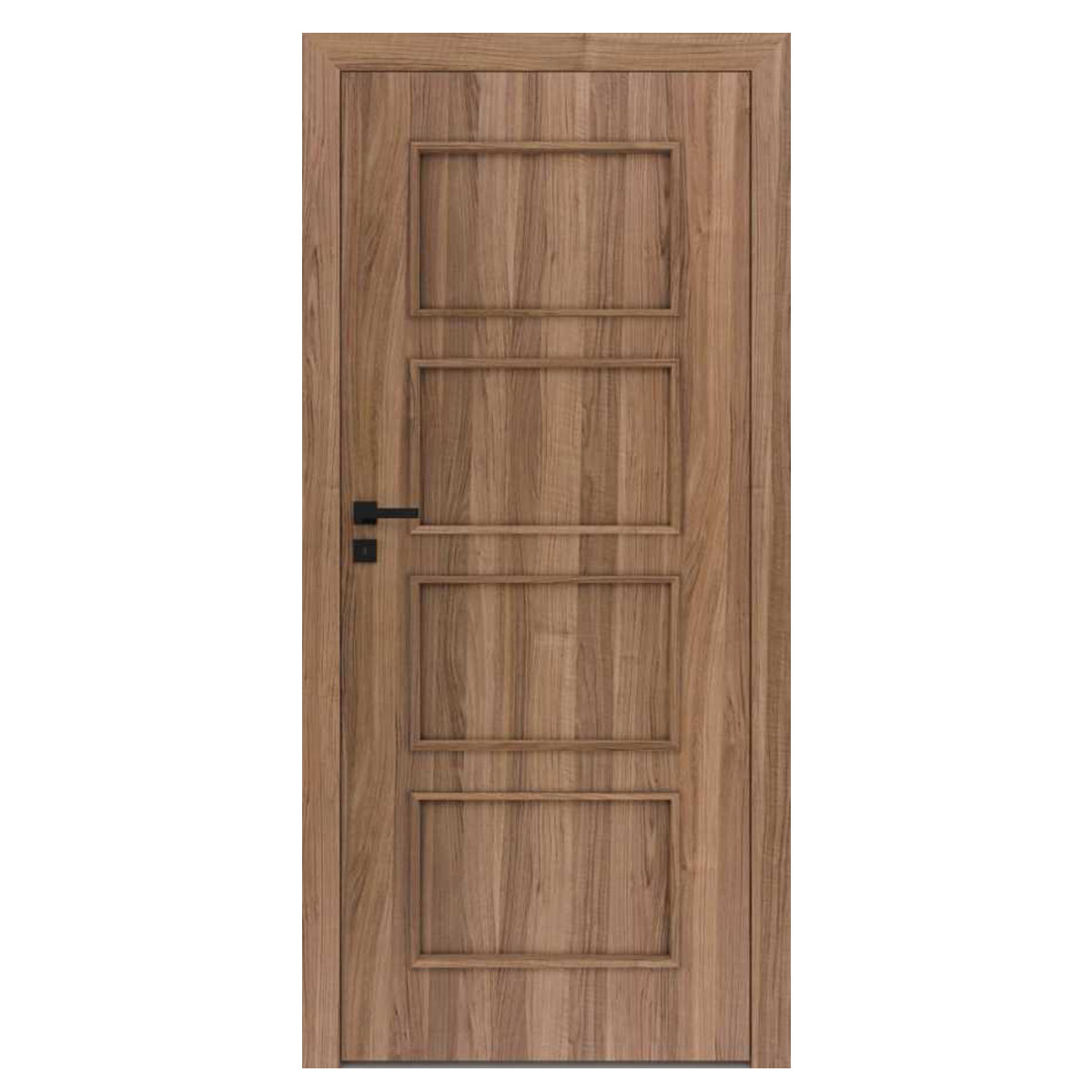 Skrzydło drzwiowe Modern wykonane jest z ramiaka iglastego, wypełnienie stanowi wkład stabilizujący "plaster miodu". Płyta HDF jest uszlachetnioną okleiną dekoracyjną DRE-Cell Decor. Zastosowane w nim komponenty sprawiają, że powierzchnia DRE-Cell Decor jest elastyczna, co zapobiega m. in. pękaniu nawet przy uderzeniu ciężkimi przedmiotami i przy zwykłym użytkowaniu, oraz odporna jest na zarysowania. Wyposażenie standardowe to: dwa lub trzy zawiasy srebrne, zamek na klucz, blokada łazienkowa, wkładka patentowa, lub zamek oszczędnościowy, szyba "kora biała" o grubości 4 mm. Opcjonalnie można wybrać szyby Chinchila lub Żaluzja. Skrzydło przygotowane jest do ewentualnego przycięcia (max. 60 mm) a także wykonania go w systemie przesuwnym.