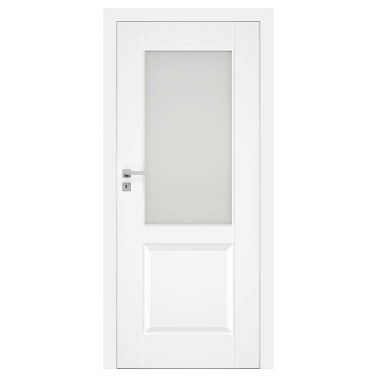 Skrzydło drzwiowe Nestor jest malowane lakierem wodnym UV. Występuje w systemie przylgowym jak i bezprzylgowym. Wykonane jest z ramiaka oraz płycin profilowanych z MDF a także szyby Decormat o grubości 4 mm. Wyposażone są w zamek na klucz, wkładkę bądź blokadę łazienkową oraz tzw. zamek oszczędnościowy, 3 zawiasy oraz opcjonalnie szybę Decormat brąz, grafit lub szybę przeźroczystą.