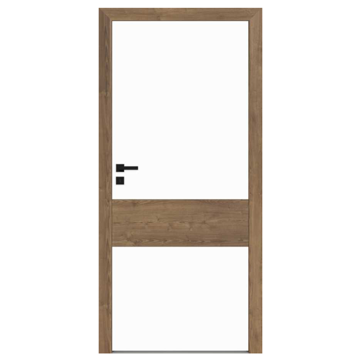 Skrzydło Riviawykonane jest w dekorze biały mat z możliwością wyboru dekoru pasa środkowego. Krawędzie skrzydła w kolorze pasa środkowego. Rama skrzydła wykonana jest drewna iglastego. Wypełnienie stanowi płyta wiórowa otworowa. Skrzydło wyposażone jest opcjonalnie: w zamek na klucz, wkładkę bądź blokadę WC, dwa lub trzy zawiasy w kolorze srebrnym. W systemie bezprzylgowym skrzydło posiada zamek magnetyczny. Wersje szklone posiadają opcjonalnie szybę: Kora biała, Chinchila, Żaluzja bez dopłat lub za dopłatą szybę dekoracyjną Decormat, Dekormat brąz lub grafit.