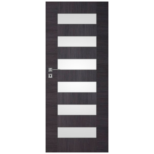 DRE-Cell. Jako jedyne skrzydło wyposażone jest w komplecie, w stylową klamkę oraz szyld. Należy do rodziny drzwi ramowych. Ramiak wykonany jest z płyty MDF oklejony dekoracyjną