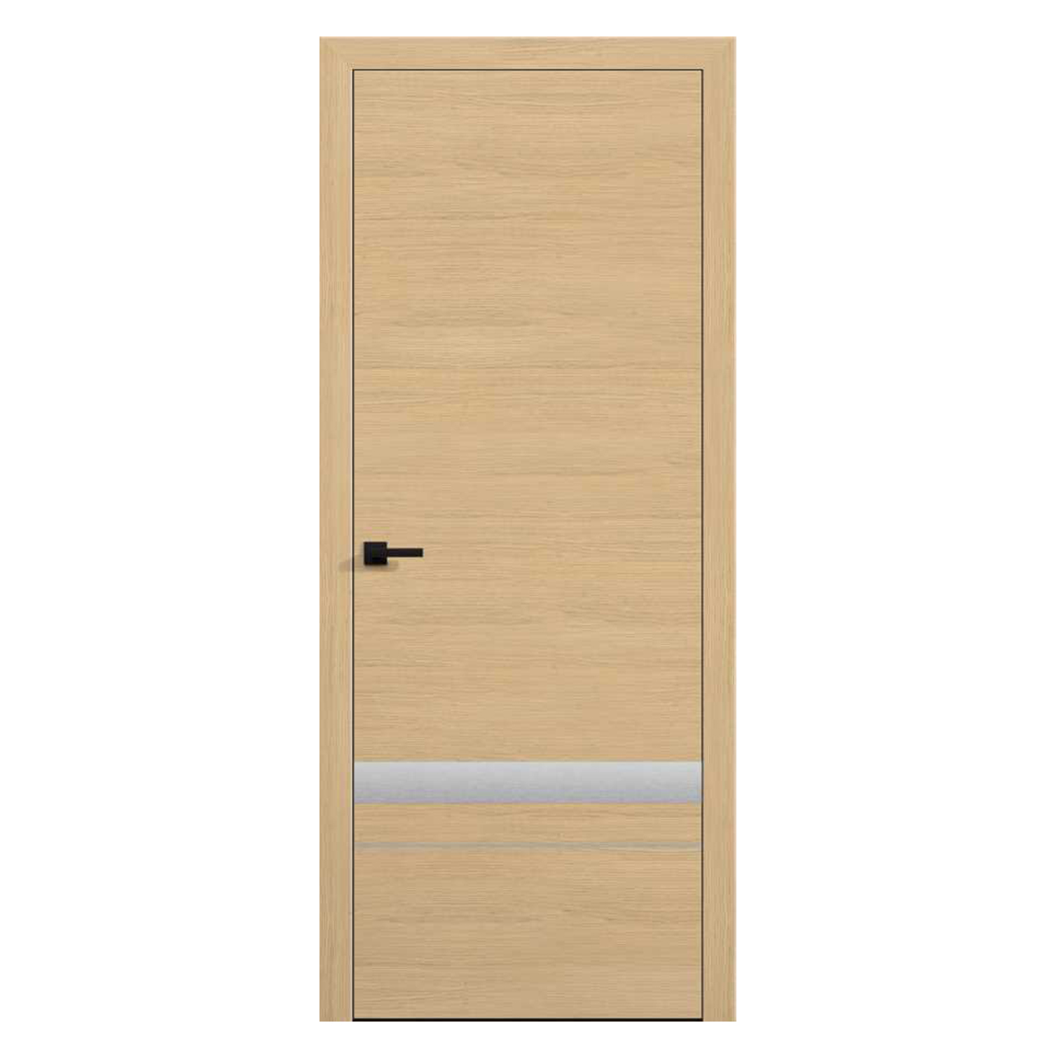 Modele drzwi płytowych KIOTO o wysokości skrzydła standard 2043 mm oraz (za dopłatą) 2300 mm wypełnione są płytą wiórową otworową, skrzydła oklejone laminatem HPL o grubości 0,8 mm w usłojeniu poziomym.