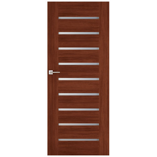Drzwi CAPRI to drzwi cieszące się uznaniem wśród amatorów minimalistycznych wnętrz. Urzekają swoim prostym, ale gustownym wzorem. Doskonale wpisują się we wnętrza, w których dominuje surowy wystrój. Ocieplają je oraz nadają oryginalny charakter pomieszczeniom. Występują w okleinach NATURA oraz DI MODA. Na wyposażenie standardowe składają się: zamek na klucz zwykły, zamek łazienkowy lub dostosowany pod wkładkę patentową, trzy zawiasy czopowe w kolorze złotym lub chromowym (w wersji przylgowej), dwa zawiasy chowane (w wersji bezprzylgowej), szyba matowa w skrzydłach z przeszkleniem, uszczelka we wrębie w skrzydłach przylgowych, skrzydło przylgowe o grubości 42 mm, bezprzylgowe: płaskie 38 mm.