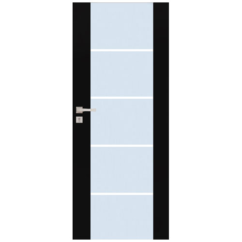 DERBY to drzwi dla lubiących wszelkiego rodzaju przeszklenia. Zarówno pasują do łazienek, jak i doskonale dzielą inne pomieszczenia, pozwalając na stały dopływ naturalnego światła. Można je uzupełniać okrągłymi i kwadratowymi aplikacjami w różnych kolorach. Przeszklenie może być ze wzorem lub bez, zależnie od upodobań. Model ten występuje we wszystkich rodzajach oklein z oferty, tj. NATURA, DI MODA oraz GLOSSA. Skrzydło składa się z ramiaków wykonanych z płyty MDF, połączonych szybą bezpieczną lub antywłamaniową o grubości 8 mm. Na wyposażenie standardowe składają się: zamek na klucz zwykły, zamek łazienkowy lub dostosowany pod wkładkę patentową, trzy zawiasy czopowe w kolorze złotym lub chromowym (w wersji przylgowej), dwa zawiasy chowane (w wersji bezprzylgowej), szyba matowa w skrzydłach z przeszkleniem, uszczelka we wrębie w skrzydłach przylgowych, skrzydło przylgowe o grubości 42 mm, bezprzylgowe: płaskie 38 mm.