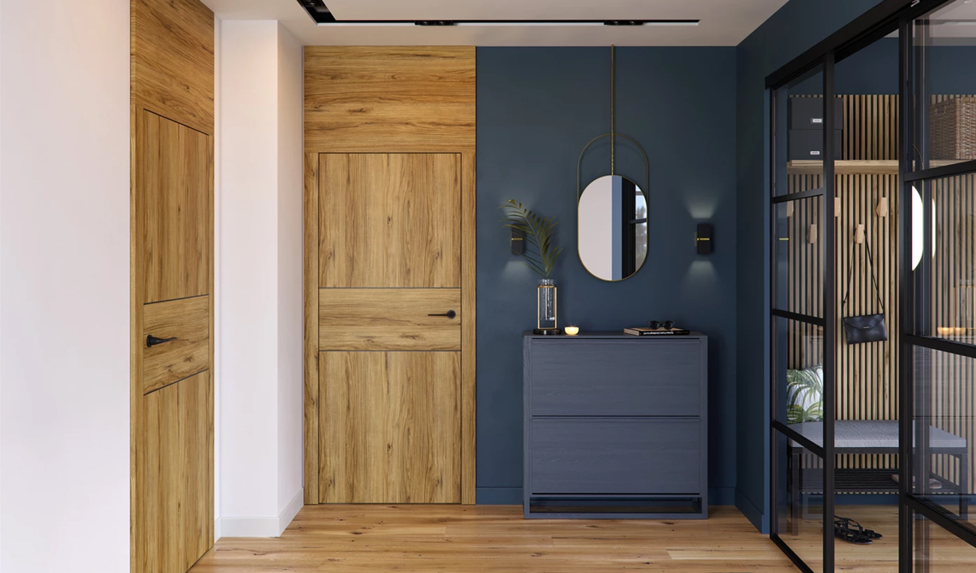 Nowoczesne i stylowe drzwi wewnętrzne z kolekcji PORTA LEVEL z ozdobnymi intarsjami (w kolorze czarnym lub srebrnym), umieszczonymi na szerokości skrzydła. Dedykowana ościeżnica LEVEL z górnym panelem 20 lub 100 centymetrów pozwala stworzyć podwyższany model drzwi, które doskonale uzupełnią wnętrza eleganckich mieszkań, stylowych kamienic i luksusowych apartamentów.