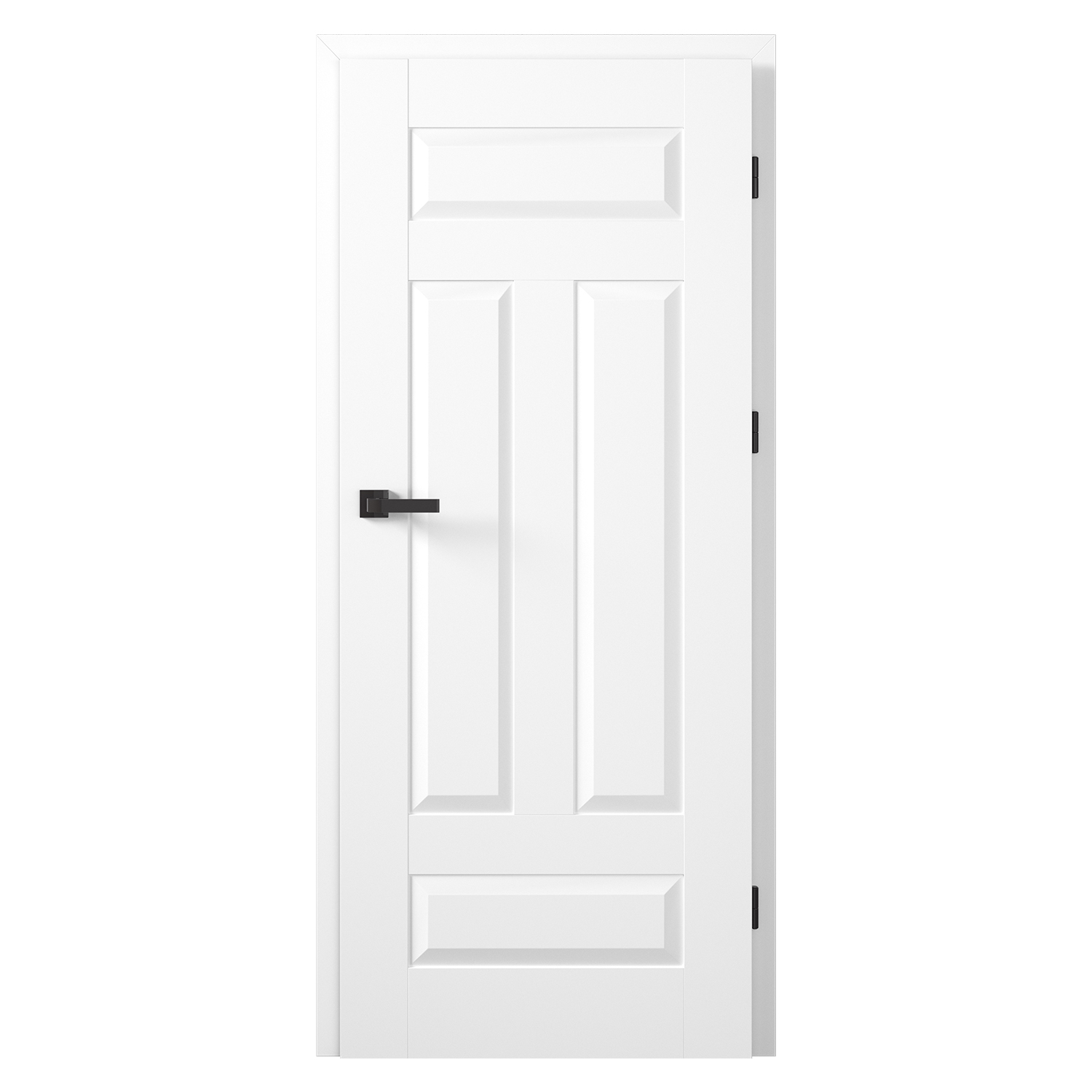 - Przylgowa wersja z trzema srebrnymi zawiasami czopowymi. Skrzydło przylgowe wyposażone jest w zamek zasuwkowy. Dostępne również opcje: na wkładkę patentową, zamek oszczędnościowy lub z blokadą łazienkową.