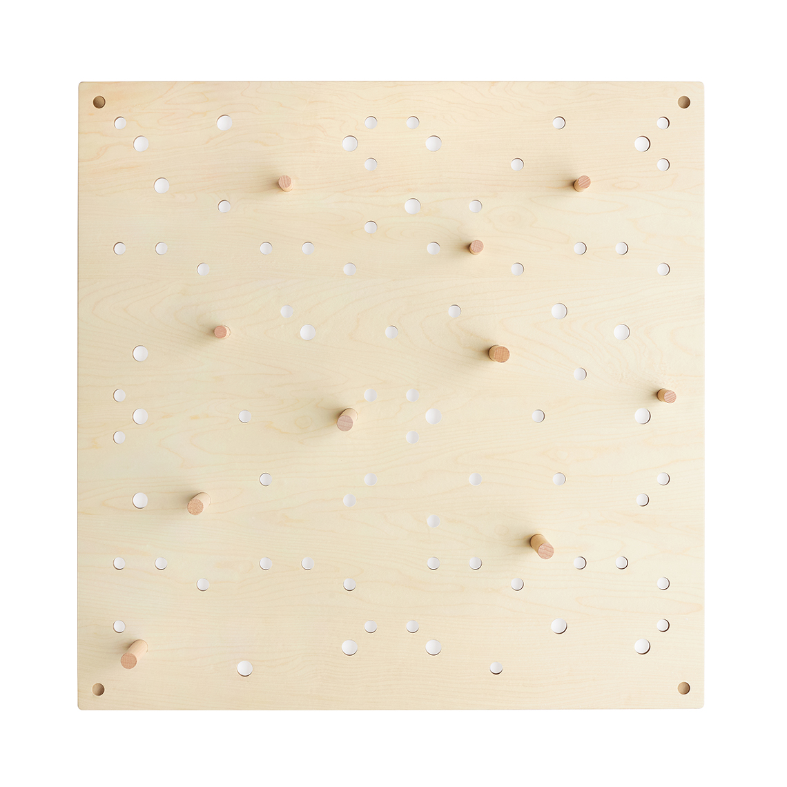 - The usable wall panel comes with 10 sturdy pegs in two sizes. They can be used as hangers.
