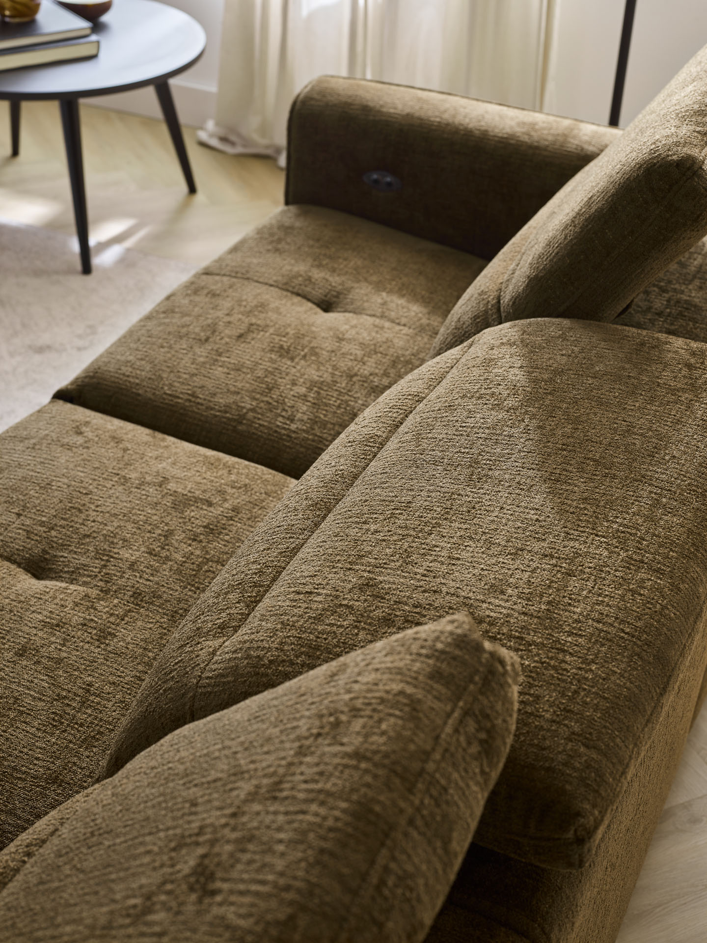 - The armrest module has an electrically extendable footrest. It can be freely controlled using buttons located inside the armrest to fully recline or only lightly relieve pressure on the legs.