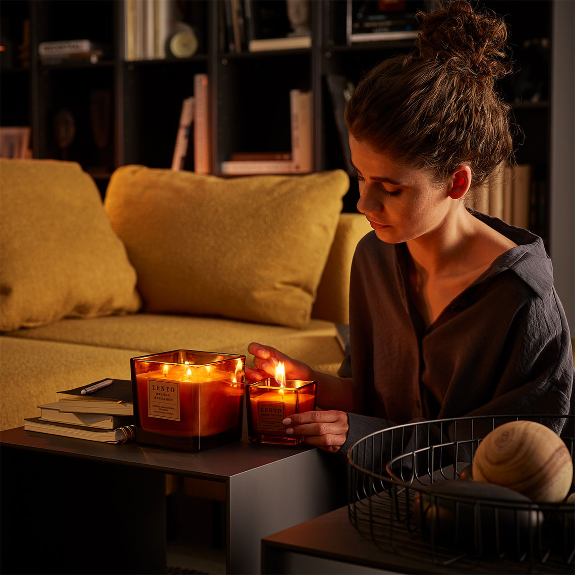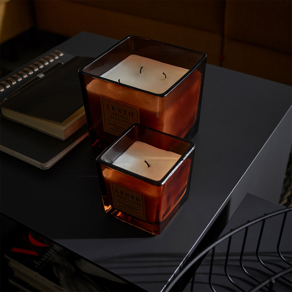 - The product also comes in a larger size - the large Lento candle has four wicks and the scent of bergamot orange.