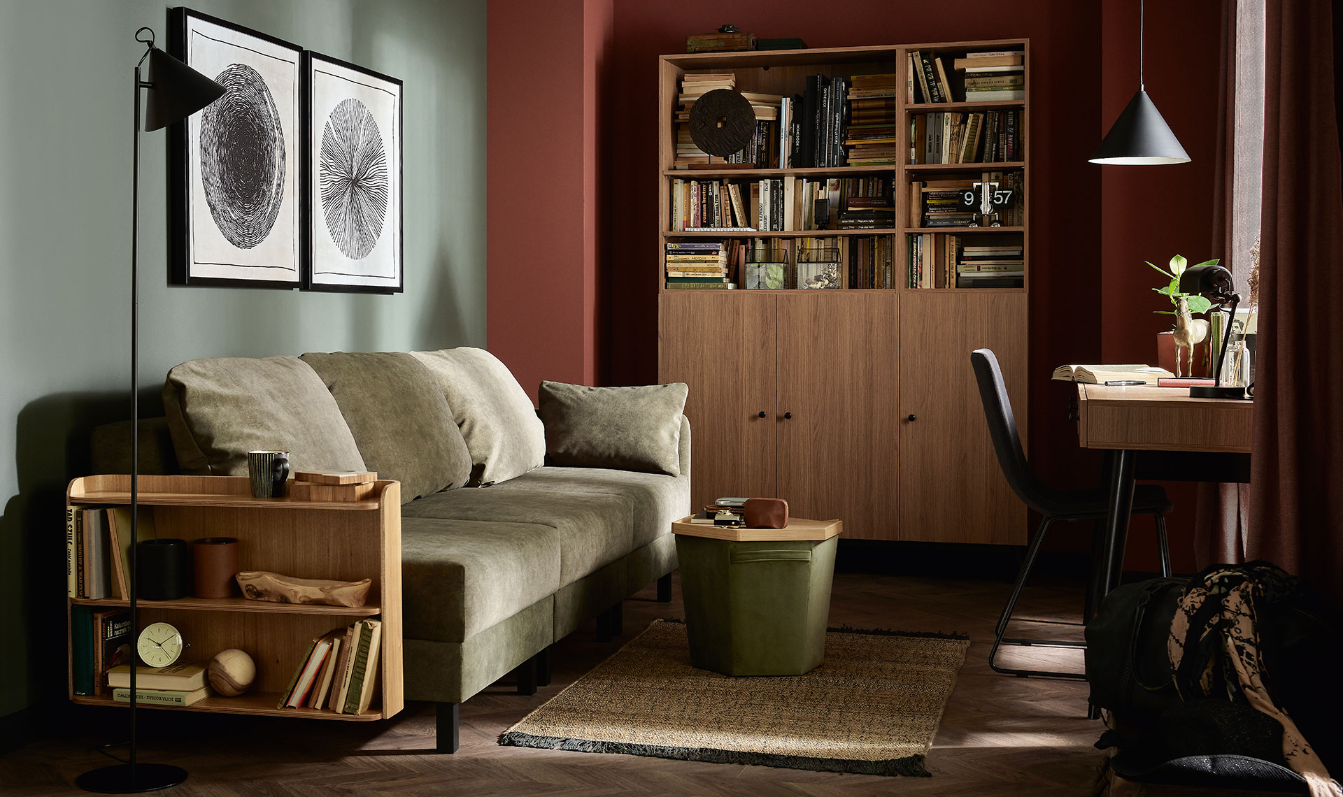 - You can freely combine the colors to create a variety of combinations. To keep the design consistent, the configurator will eliminate combinations of different shades of oak decor.