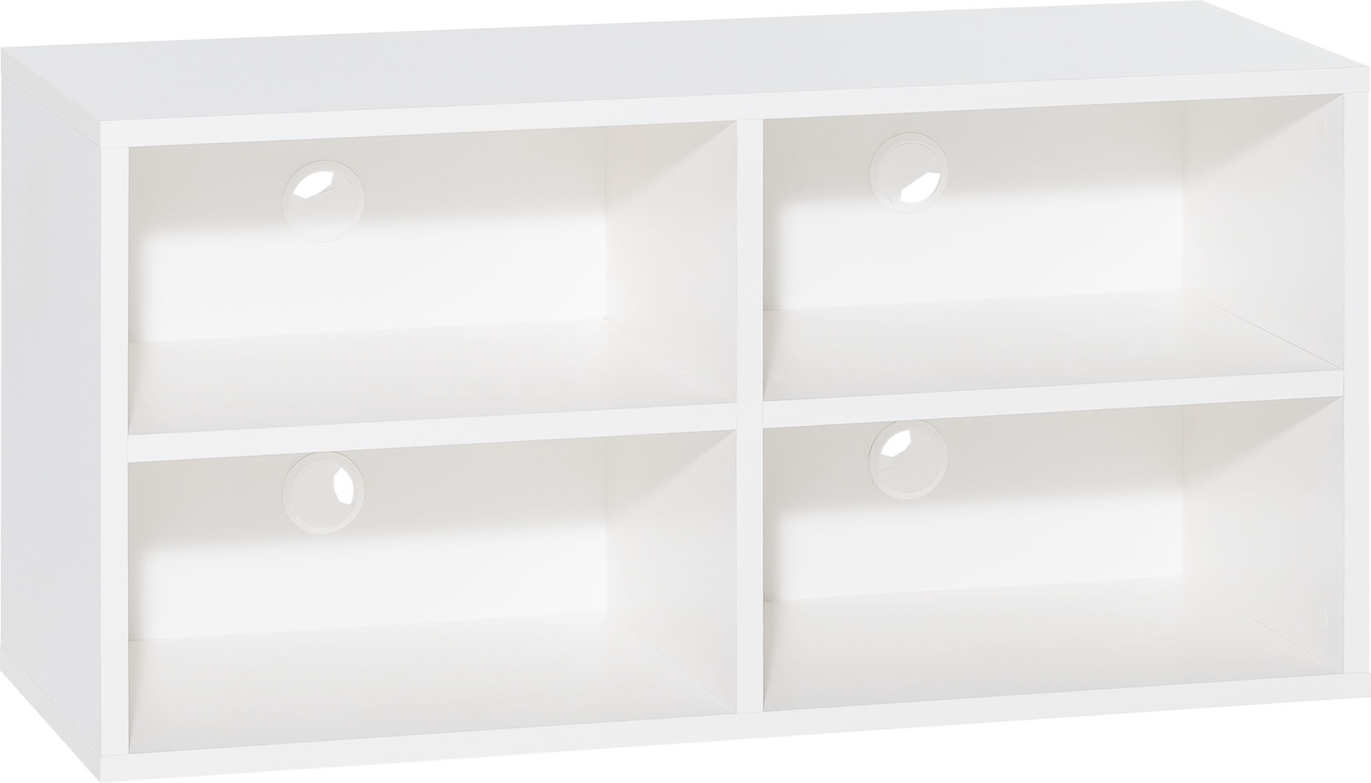 - The RTV cabinet has 4 functional niches of identical size. Each of them contains a grommet for cables, which allows you to place equipment that requires connection to electricity.