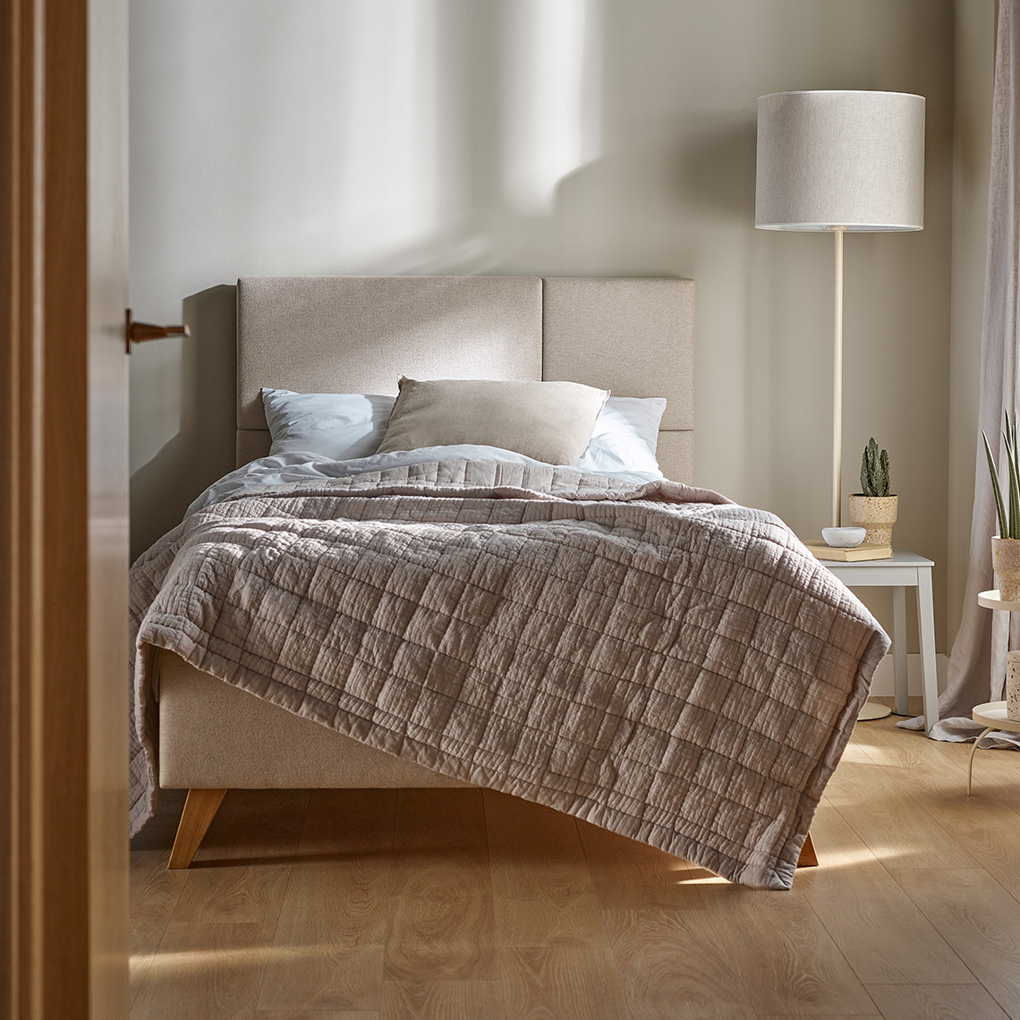The Geometric upholstered bed will create an exceptionally comfortable place of relaxation, ideal for one person. The wide sleeping surface will provide plenty of space for a peaceful sleep. The soft headrest with delicate quilting will provide comfortable support for your back while resting. The furniture has a tilting frame and a large bedding container. The bed is manufactured in Poland to individual order - the buyer decides on the upholstery fabric and type of legs himself.