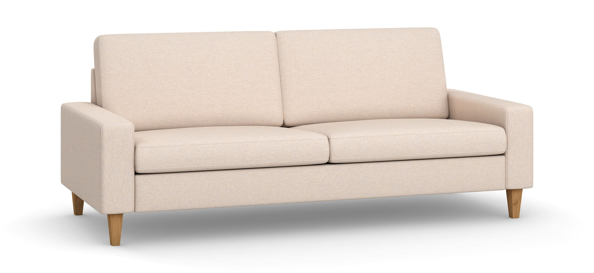 - The medium-sized sofa will accommodate 3 adults. Thanks to its universal design, it fits into interiors decorated in different styles.