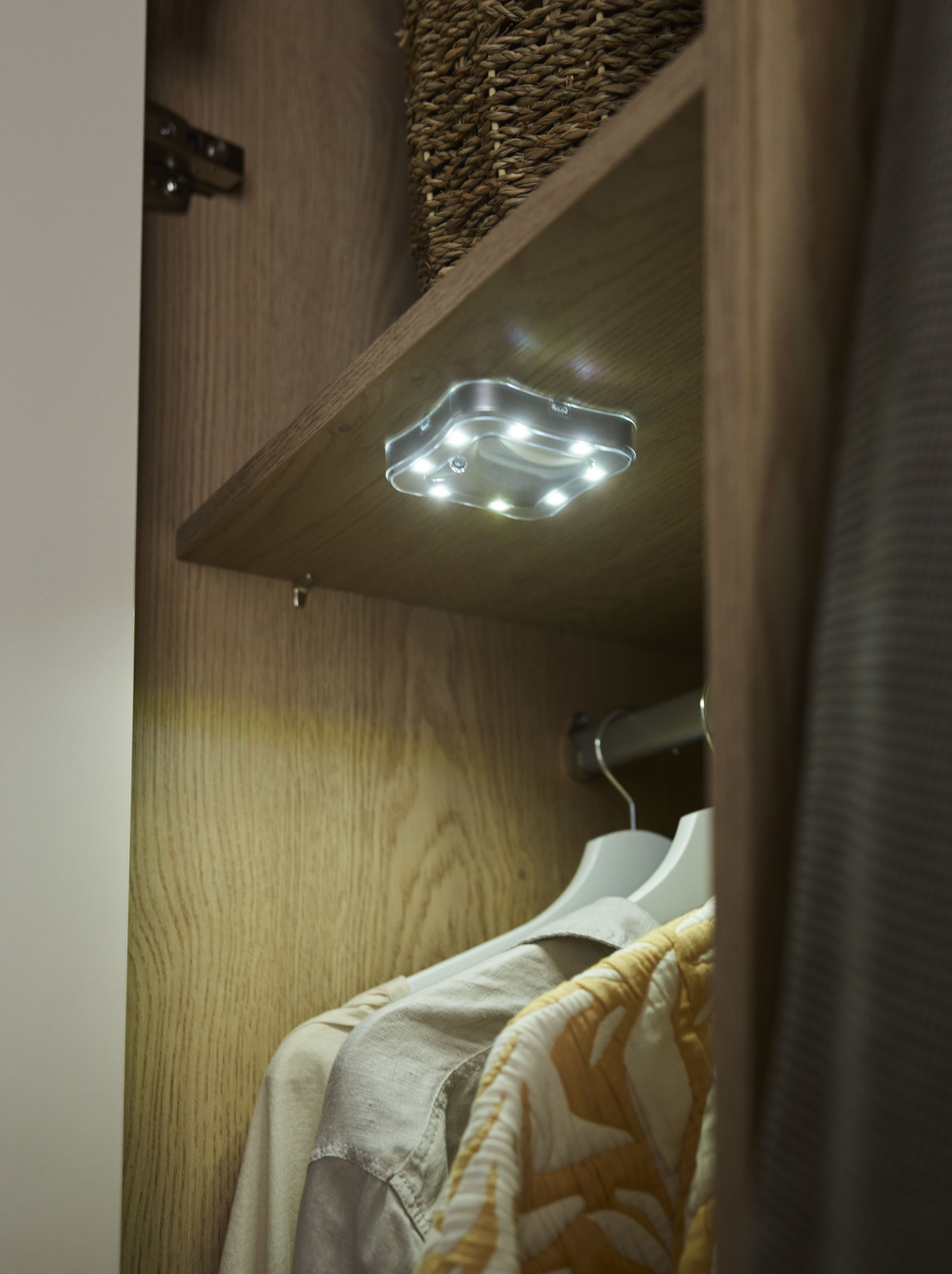 - Inside the closet there are LED lights with a motion sensor, which light up when the door is opened. This makes it possible to take out clothes without illuminating the entire room.