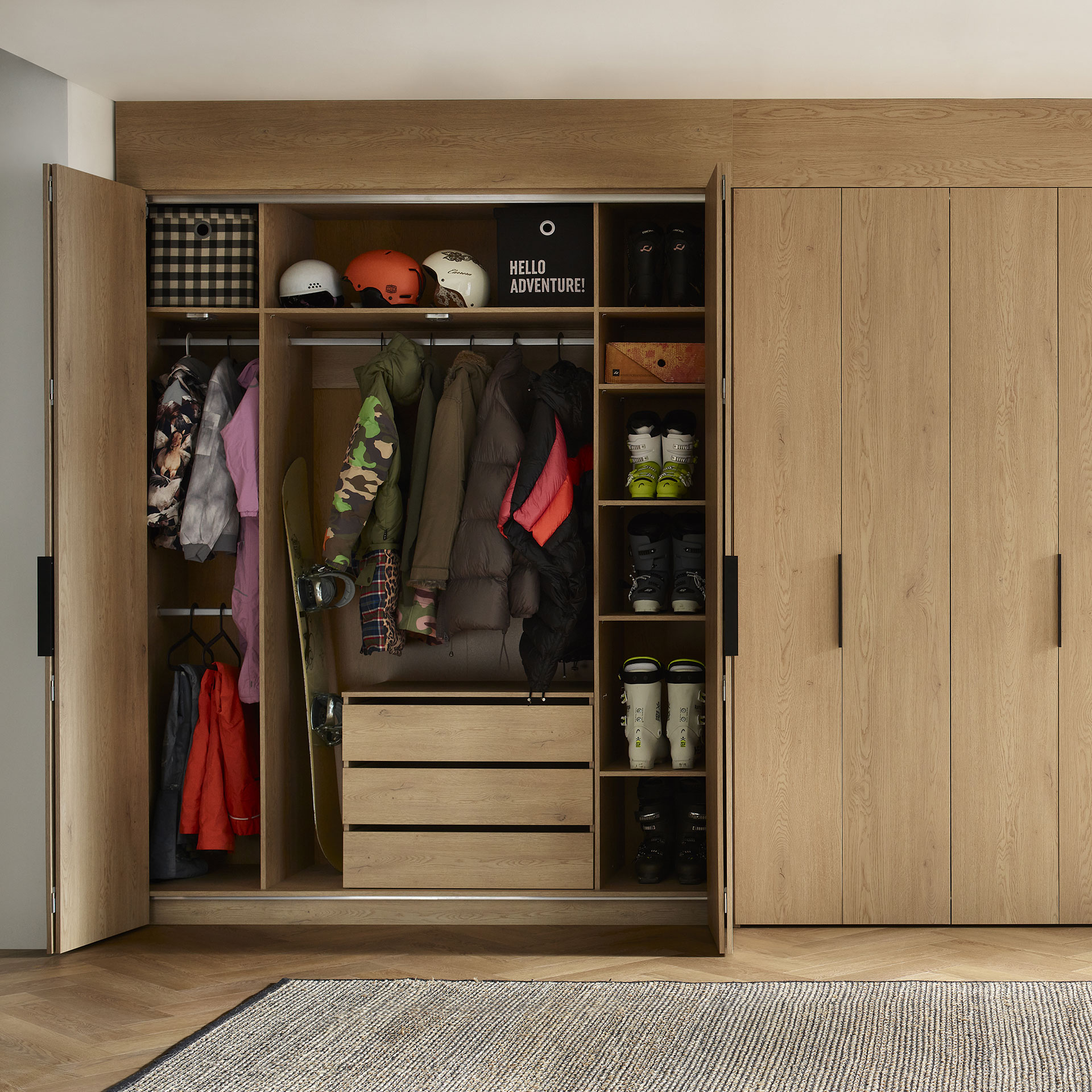 - The body of the Stor closet is oak in color. The color of its side can be changed by installing a dedicated overlay in the desired shade.