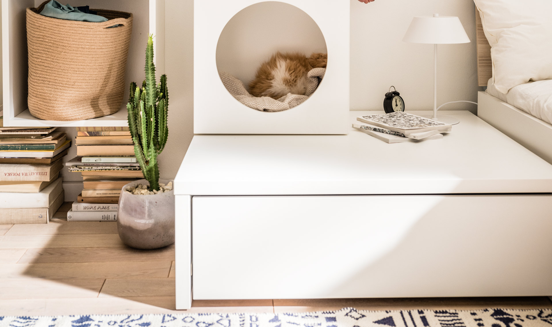 The platform provides a functional base for furniture from the Young Users collection. It comes in a version with a mobile drawer or a pull-out table, and additionally works well as a seat - just place pillows on it.