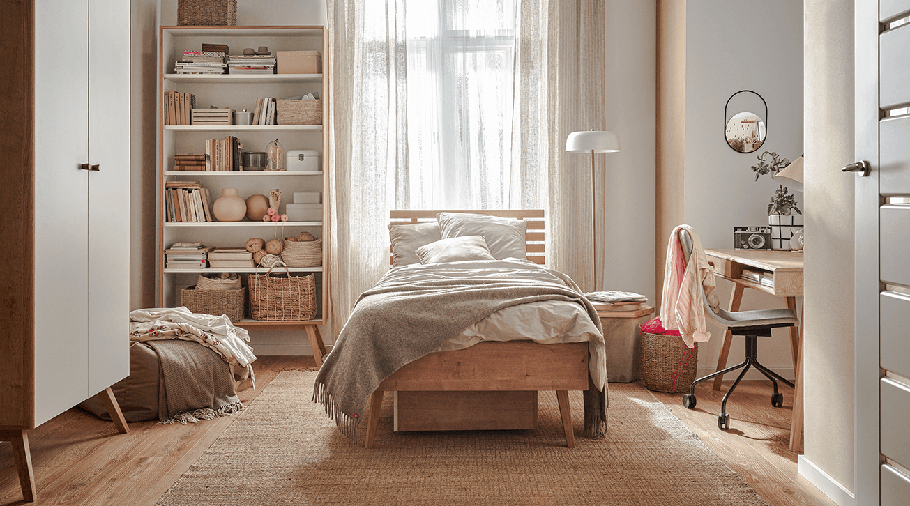 With its ergonomic shapes and thoughtful functionality, this collection will meet the demands of any teenager's lifestyle. The practical recess in the desk will help to organise chargers, while the under-bed storage box on wheels will store extra bedding or seasonal clothes.
