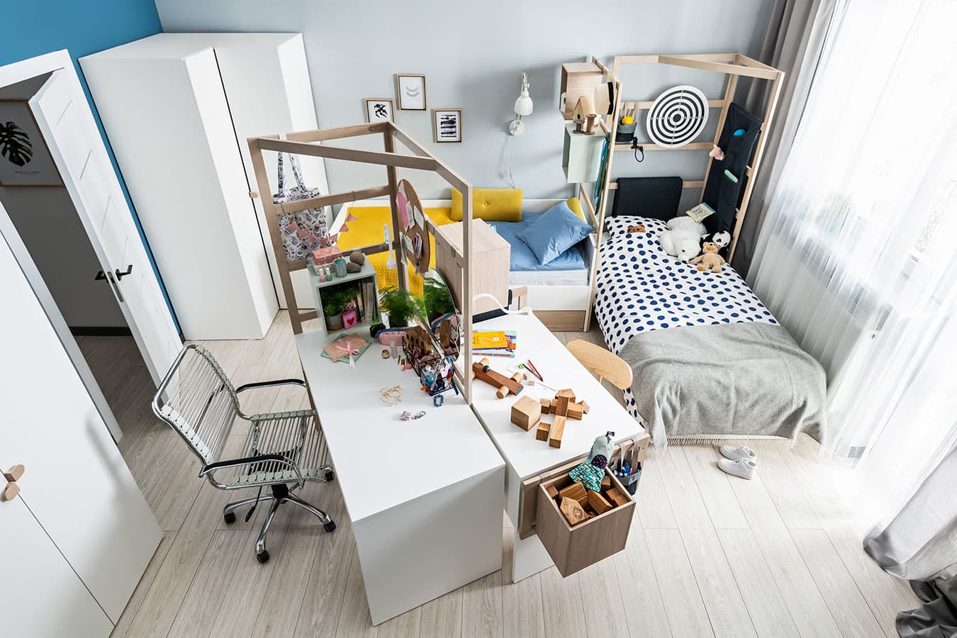 The Stige desk is a clever and simple way to set aside a comfortable space for each child's world. It will also work perfectly in an only child's room.