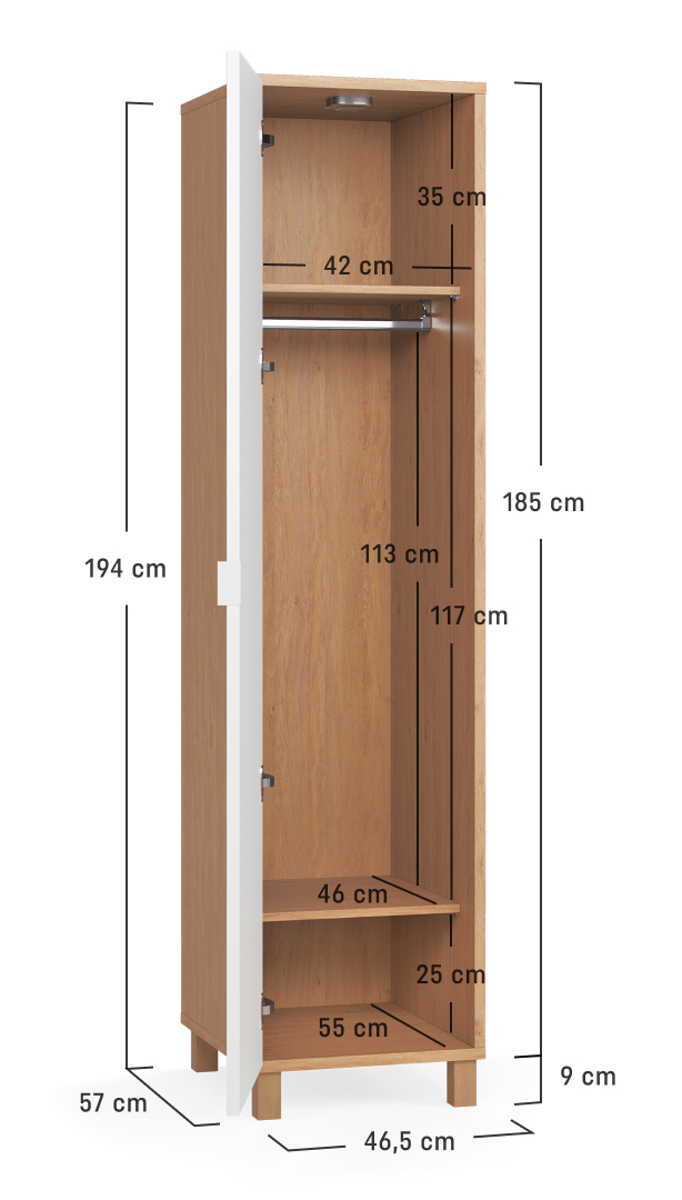 width: 46.5 cmheight: 185 cmDepth: 57 cm