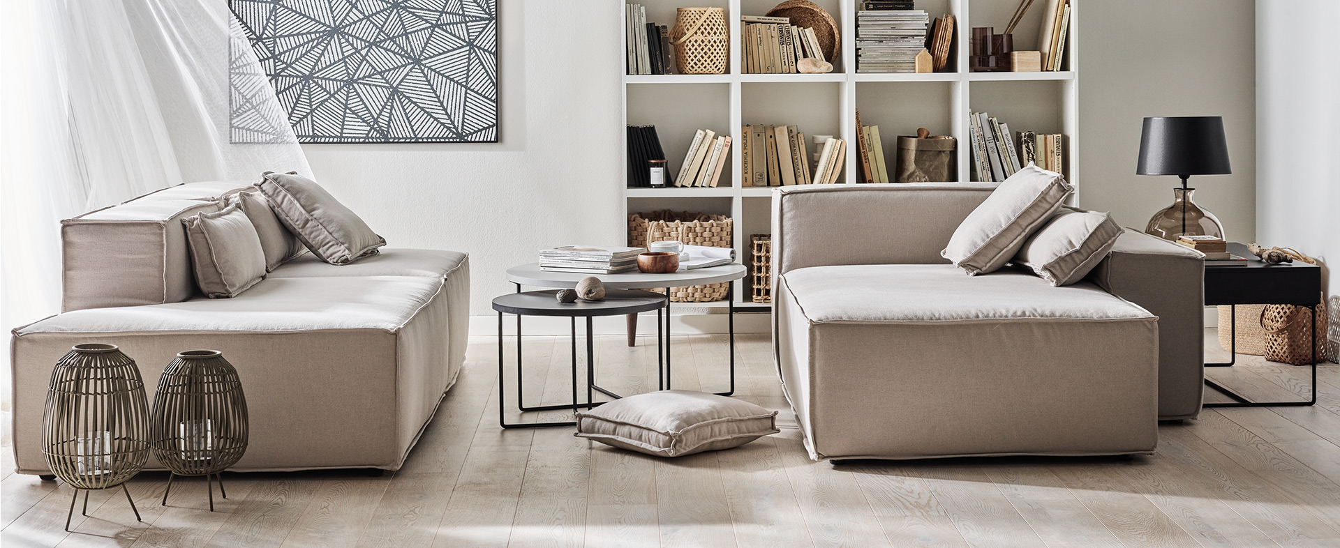 The modules are fully upholstered - they can be used as independent lounge furniture in the room.