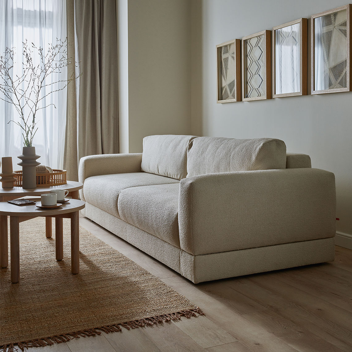 Perfect for a moment of relaxation with a book, a cozy conversation and a long evening in front of the TV. The Stello sofa wins hearts in no time. 3 people can relax freely on the wide seat with a soft backrest. After unfolding, the furniture will provide a comfortable place to sleep, and for everyday use - it will be used to store bedding. It has gentle, rounded shapes, and their beauty is emphasized by a decorative strip with an upholstered or wooden finish. You can choose the upholstery material for your furniture from several hundred fabrics with different properties.