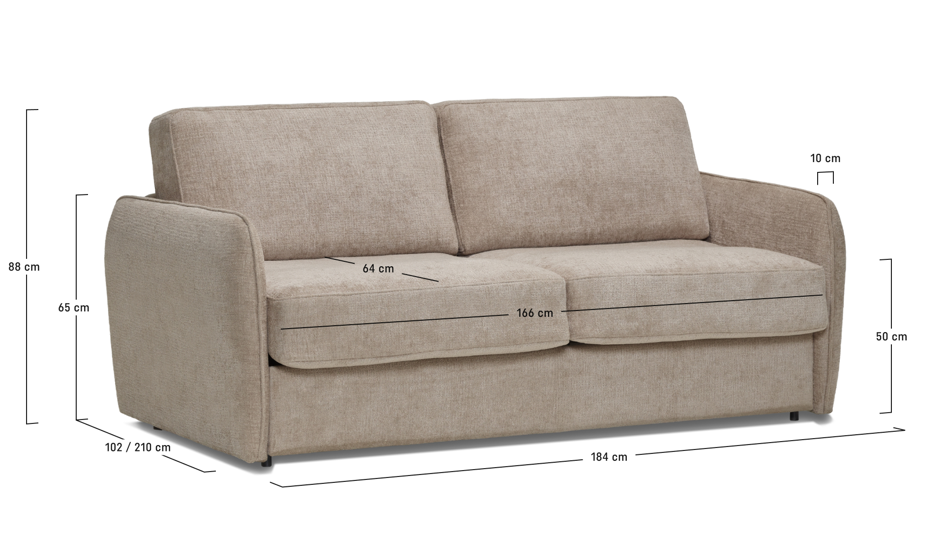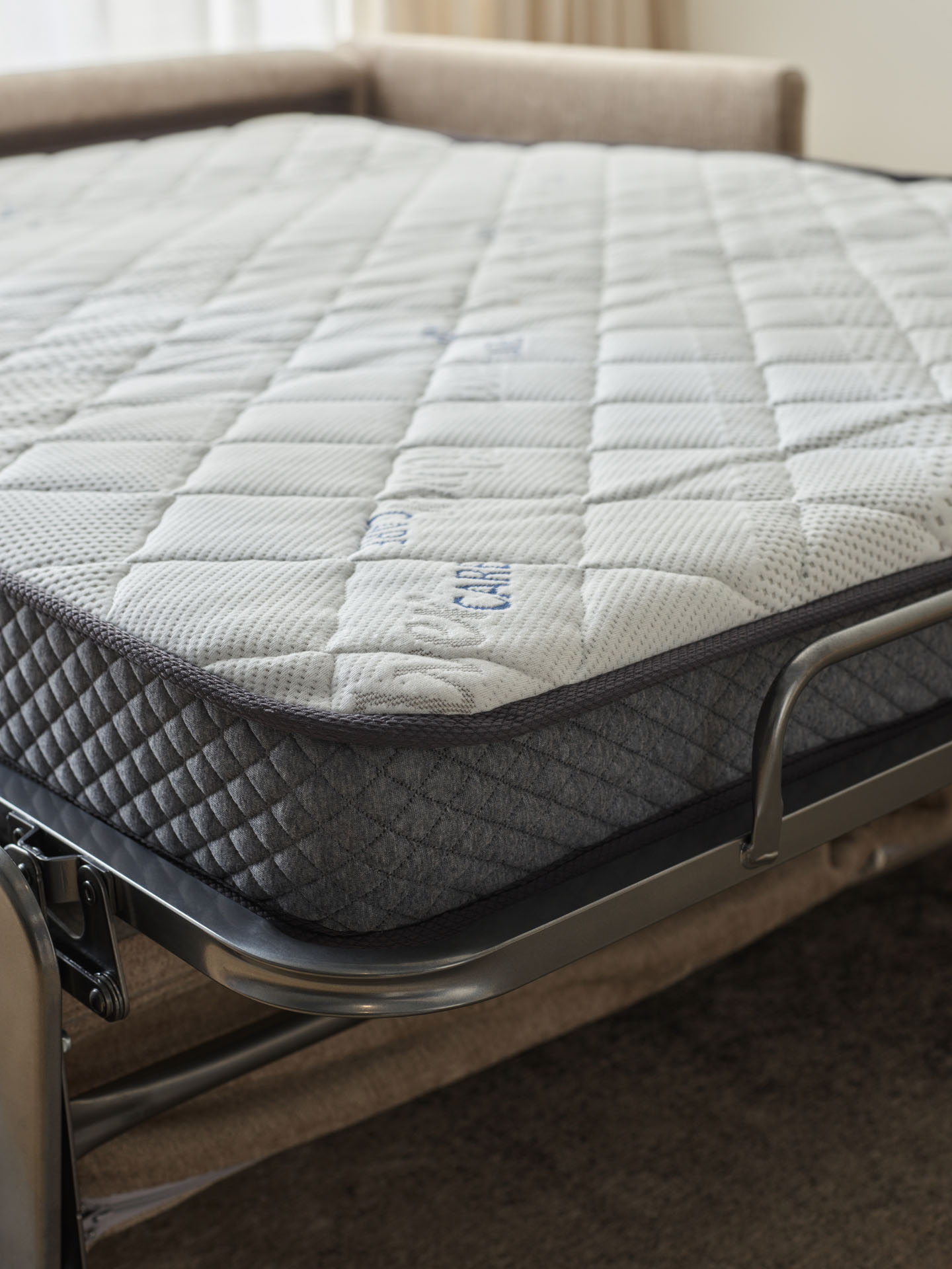 - The Visco foam seat softly adapts to the body and always returns to its shape, guaranteeing exceptional resting comfort. The seat and back cushions are permanently attached to the sofa, so you don't have to remove them when unfolding the bed.