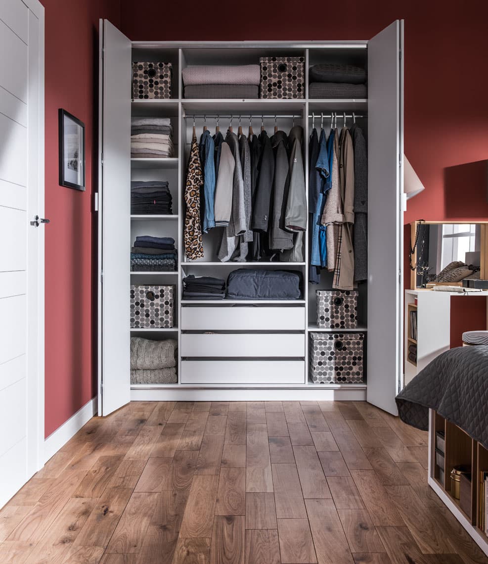 - The sliding doors of the closet fold like an accordion. This way you will always have all your clothes and accessories at hand.