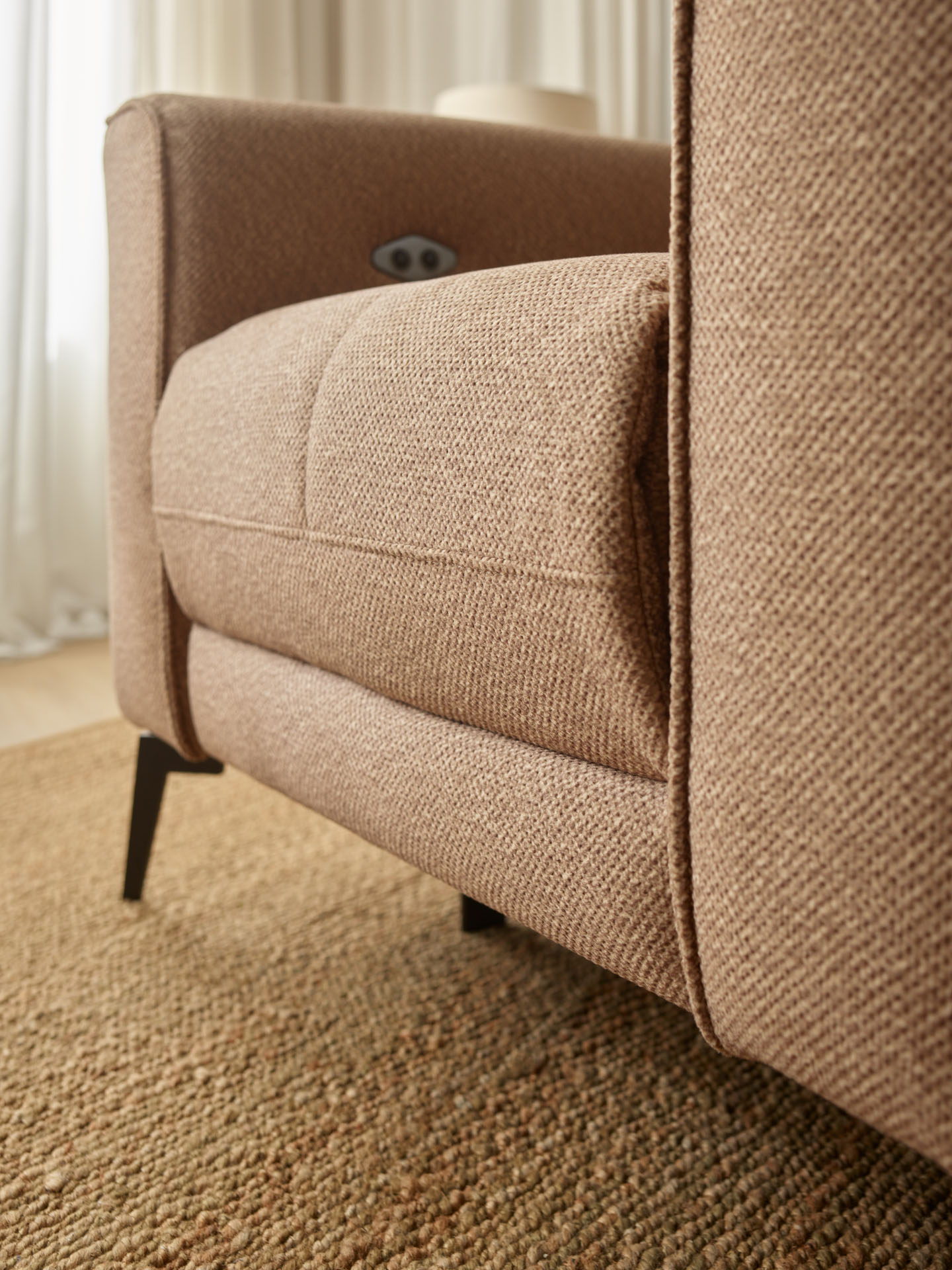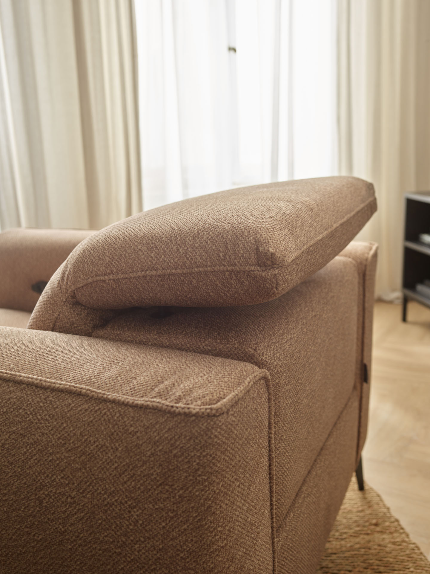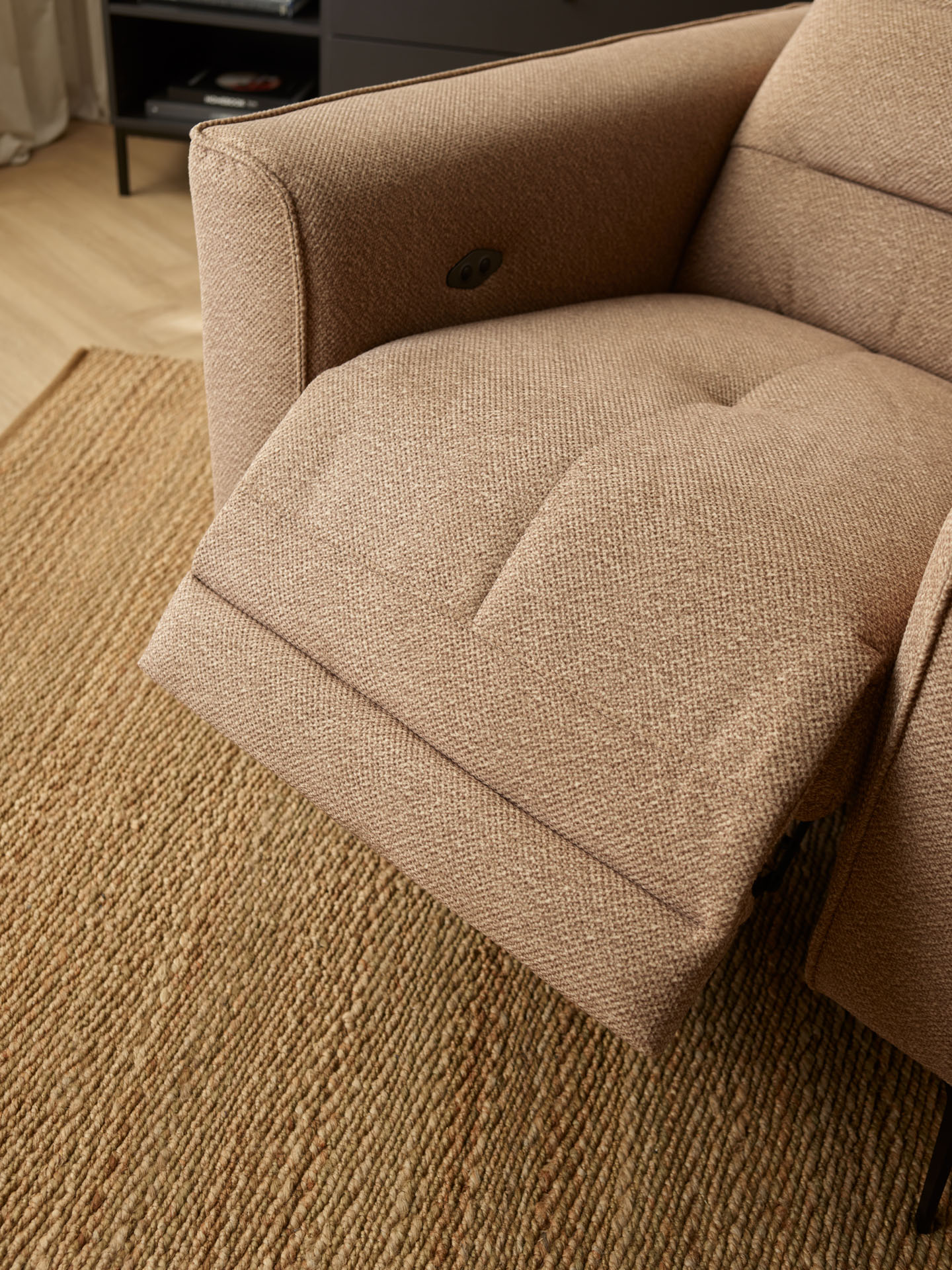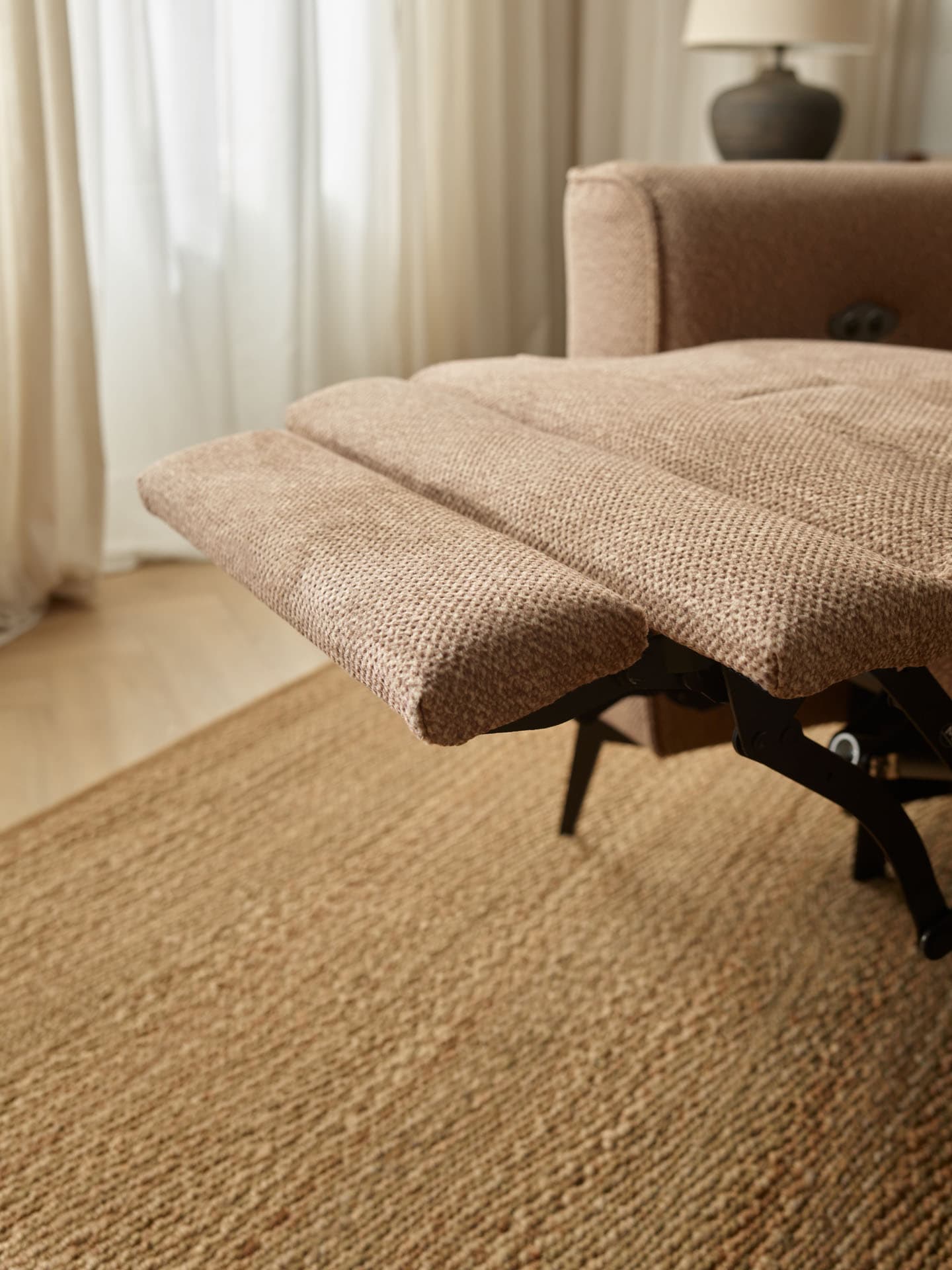- When you change the position of the footrest, the position of the backrest also changes. A great advantage of the Motio armchair is that it can be placed in a horizontal position, ideal for an afternoon nap. Unfolding the furniture requires moving it slightly away from the wall.