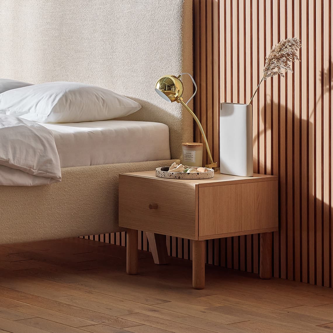 The compact and capacious bedside table is the perfect place for all the items you want to have always at hand. Thanks to Creative's innovative furniture system, you can easily adjust its functions and design to suit your needs and bedroom design ideas.