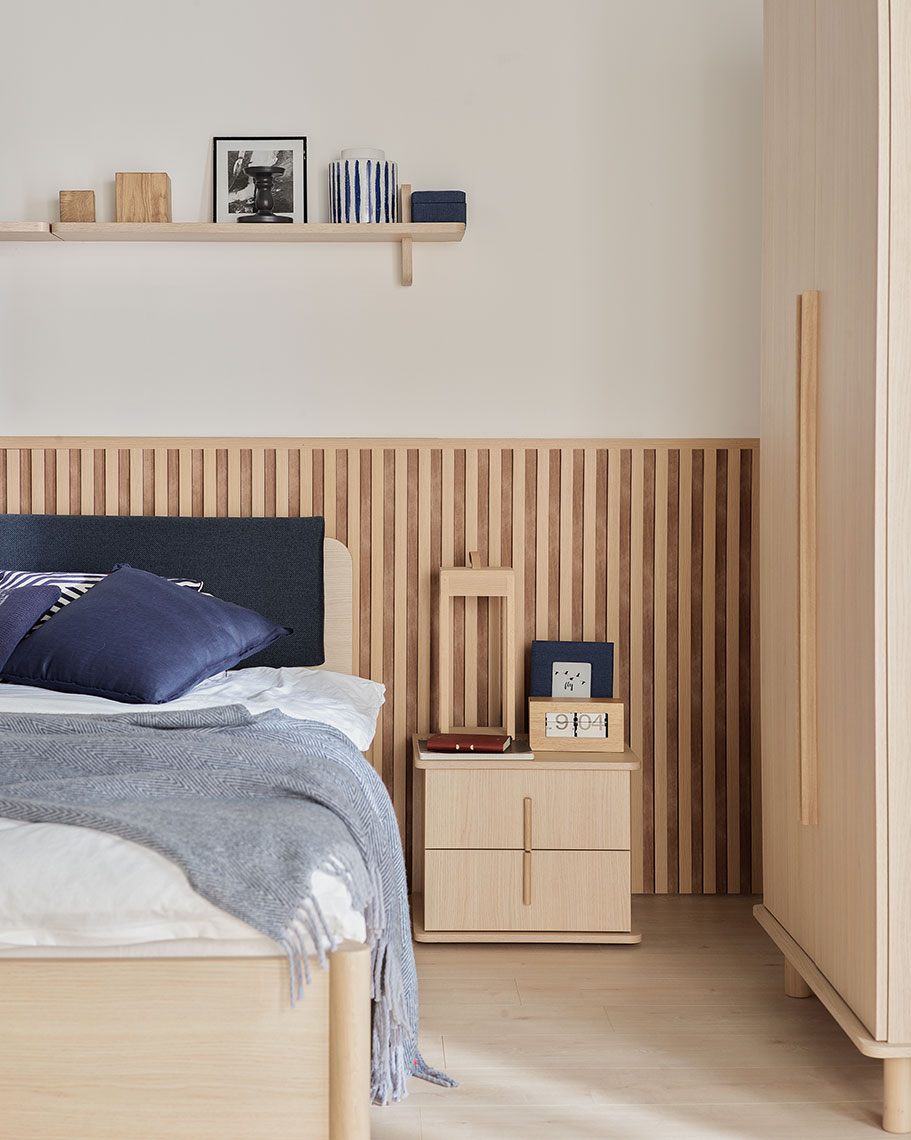 - The height of the table is matched to the height of the bed frame of the OMM collection.