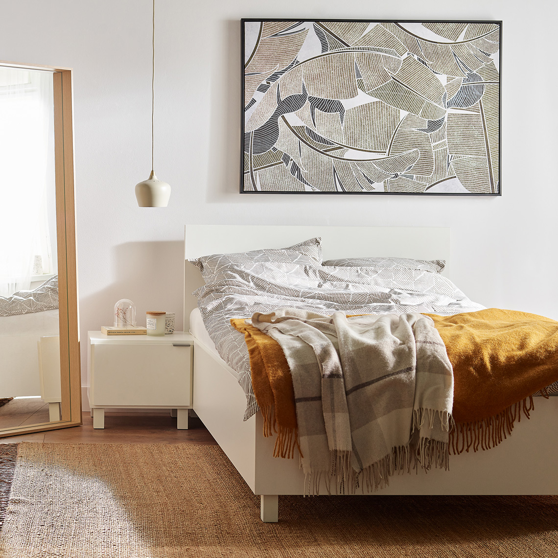 - The height of both tables has been matched to the height of the beds. It is enough to choose for both the bed and the tables legs or their absence (then the furniture is placed on protective feet) - both pieces of furniture will fit perfectly.