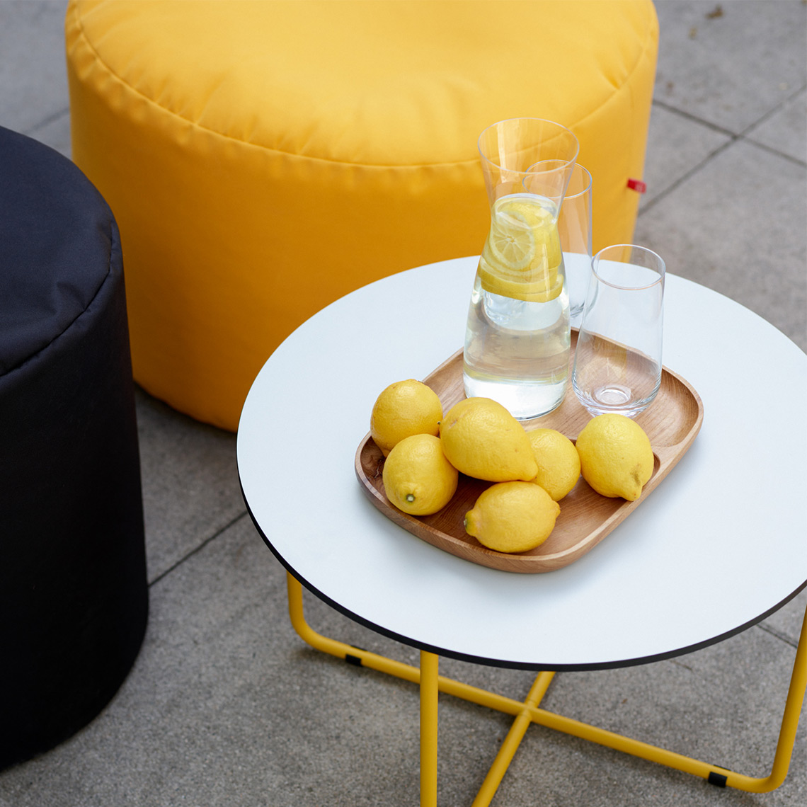 It can be used as a resting place or a table by combining it with chairs from the Looz series.