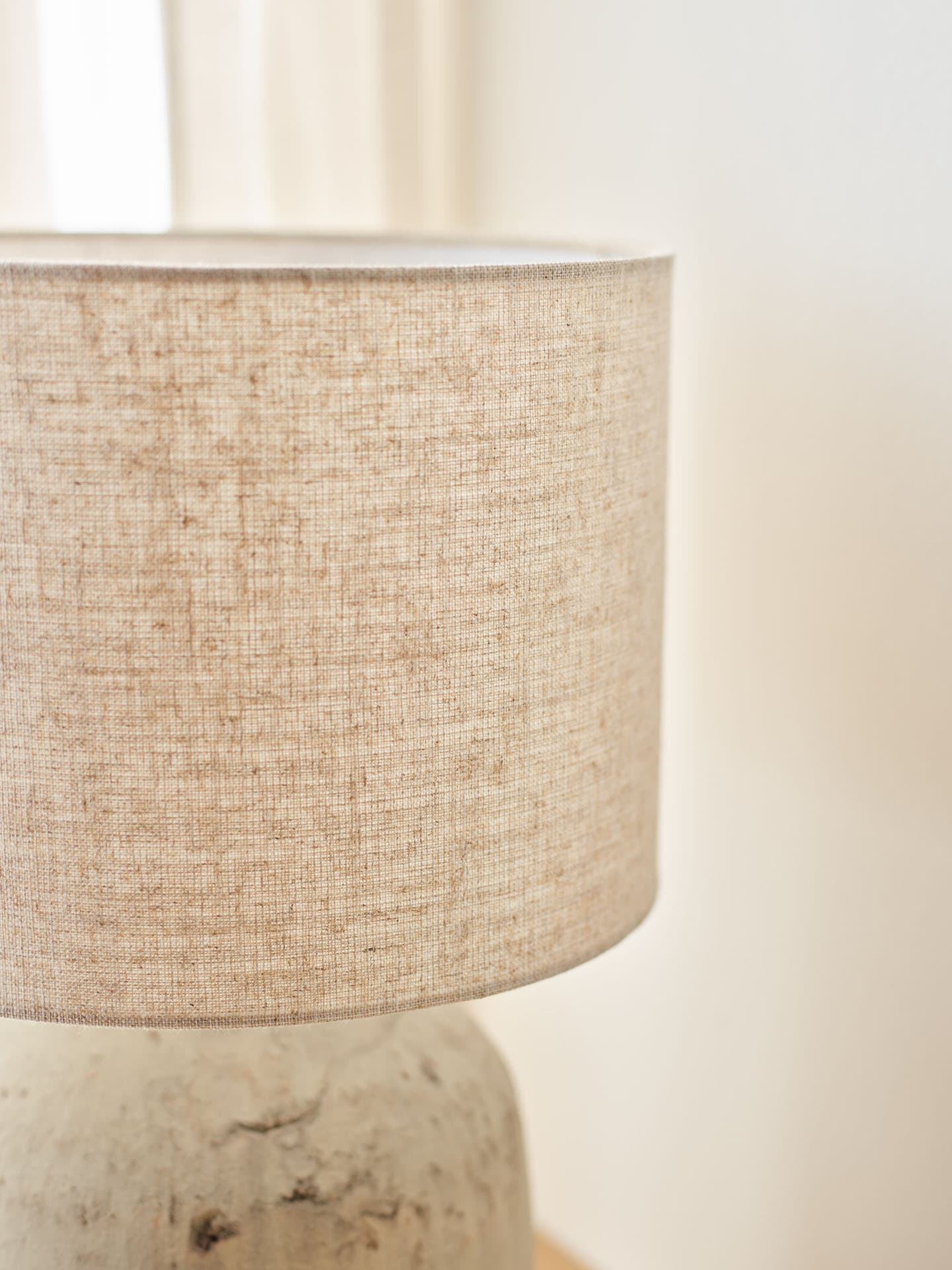 The Bilby dresser lamp by House Nordic is the perfect combination of modern design and natural aesthetics. The distinctive ceramic base with a texture reminiscent of raw stone in gray gives the interior an industrial feel, while the textile lampshade brings warmth and coziness.