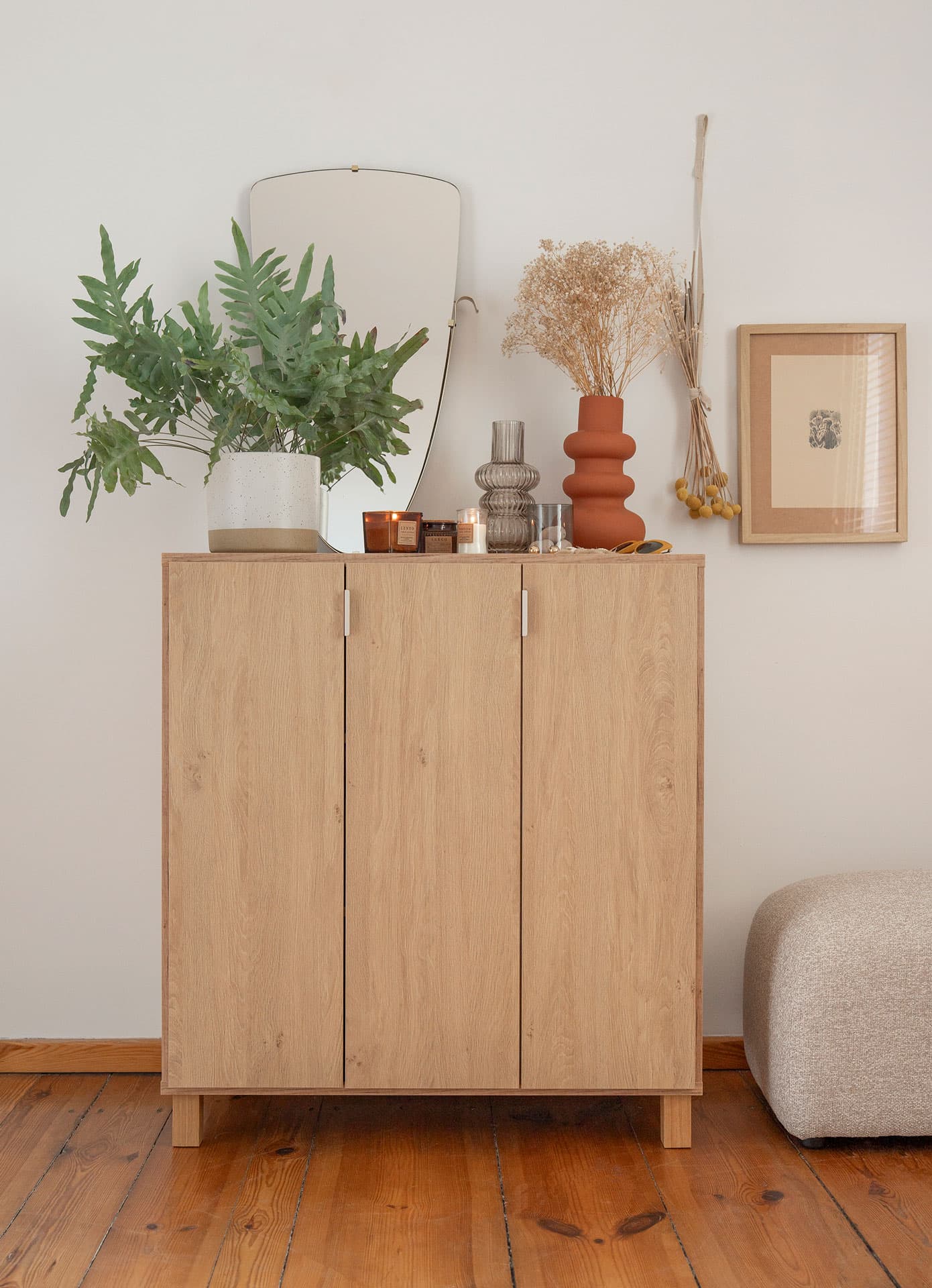 The door of the chest of drawers has Silent System, thanks to which even a sudden closing will not cause the fronts to hit the furniture.