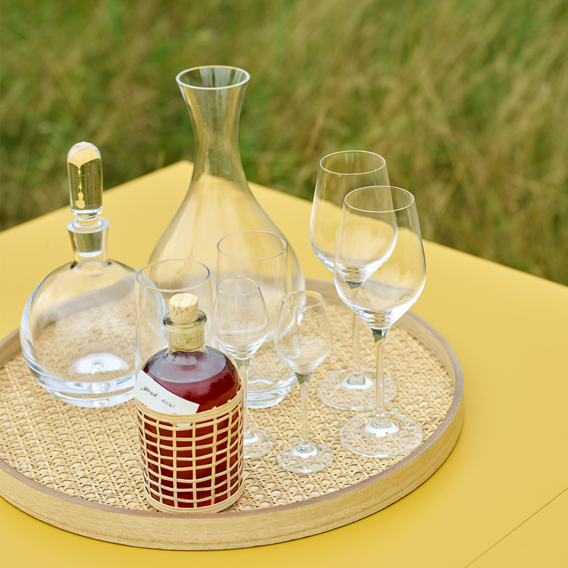 The shape of the decanter, tapering to the top, allows the best flavor notes of liquors to be released.