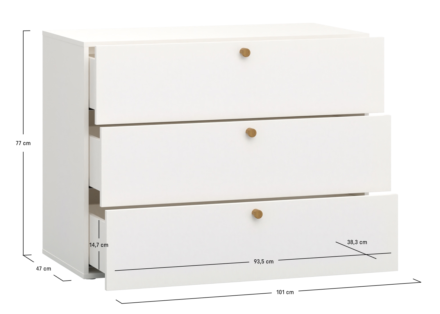 - The chest of drawers was made of high quality 16 mm thick laminated board.